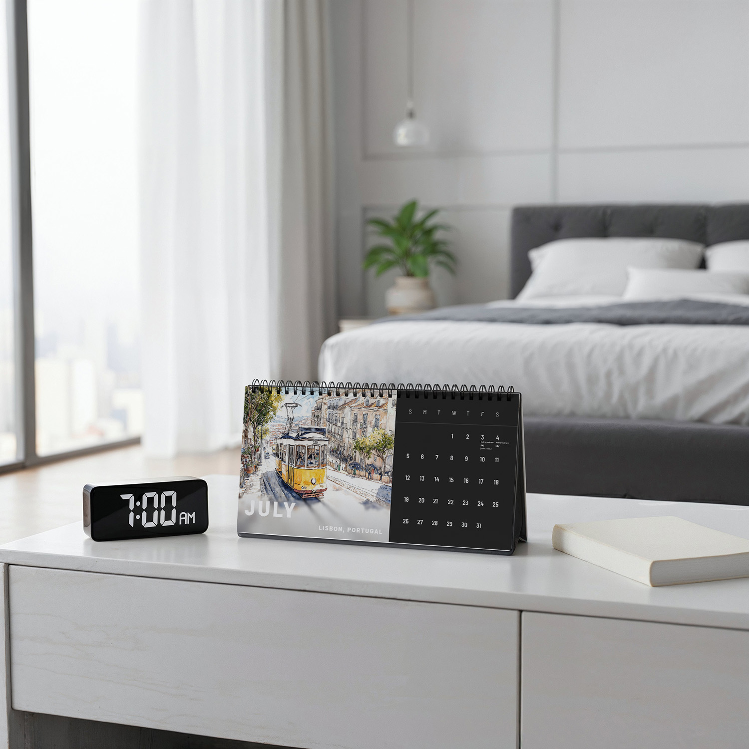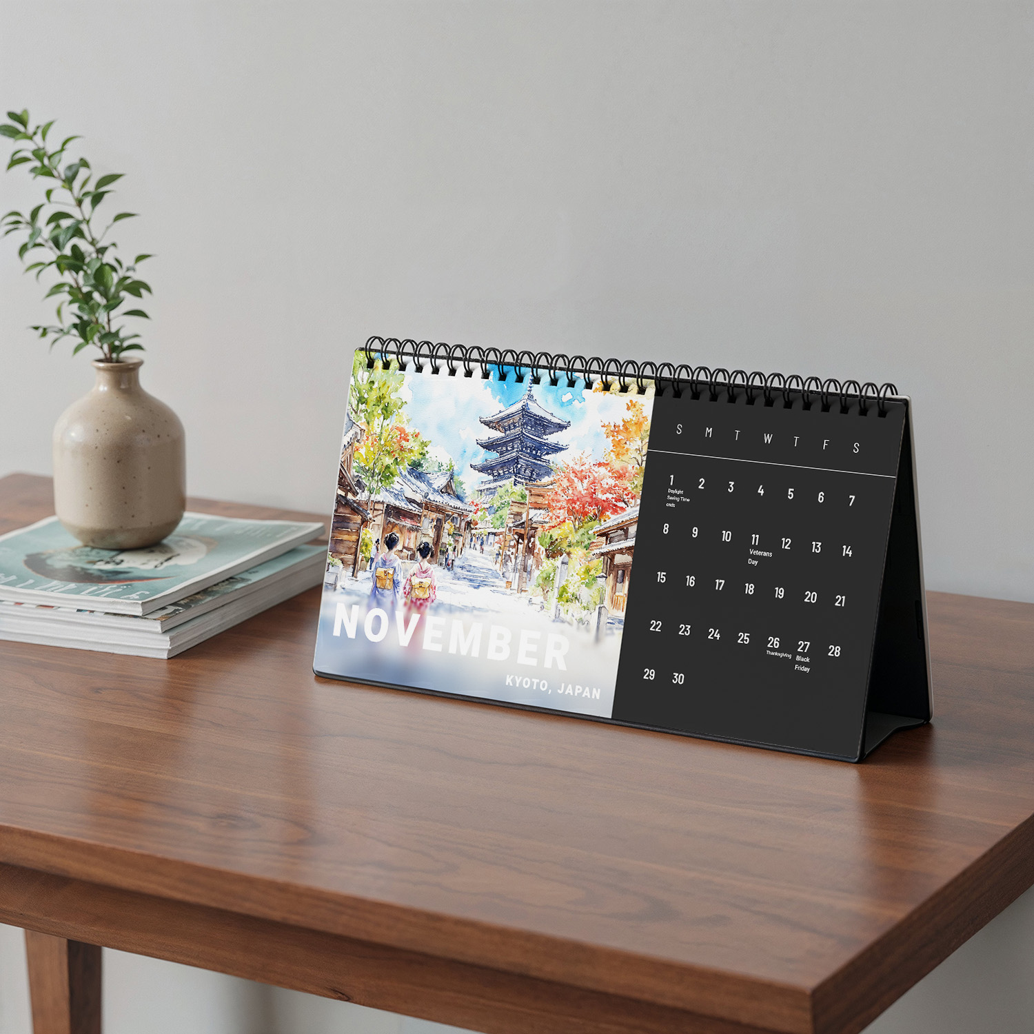 Bring the world’s most breathtaking travel destinations into your home each month with this stunning 2026 desktop calendar.