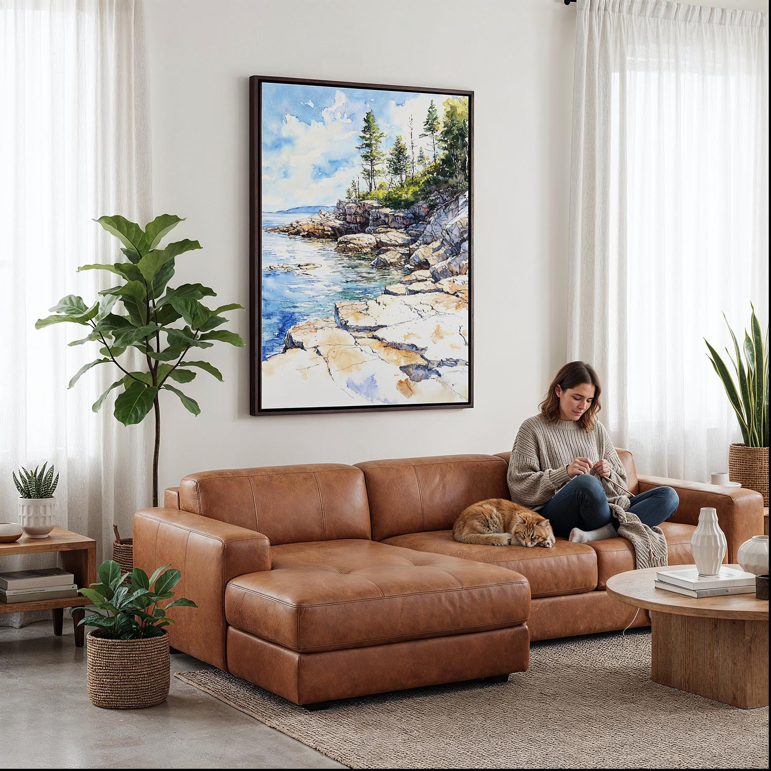 Acadia National Park Watercolor Canvas Print – Seaside Landscape Art