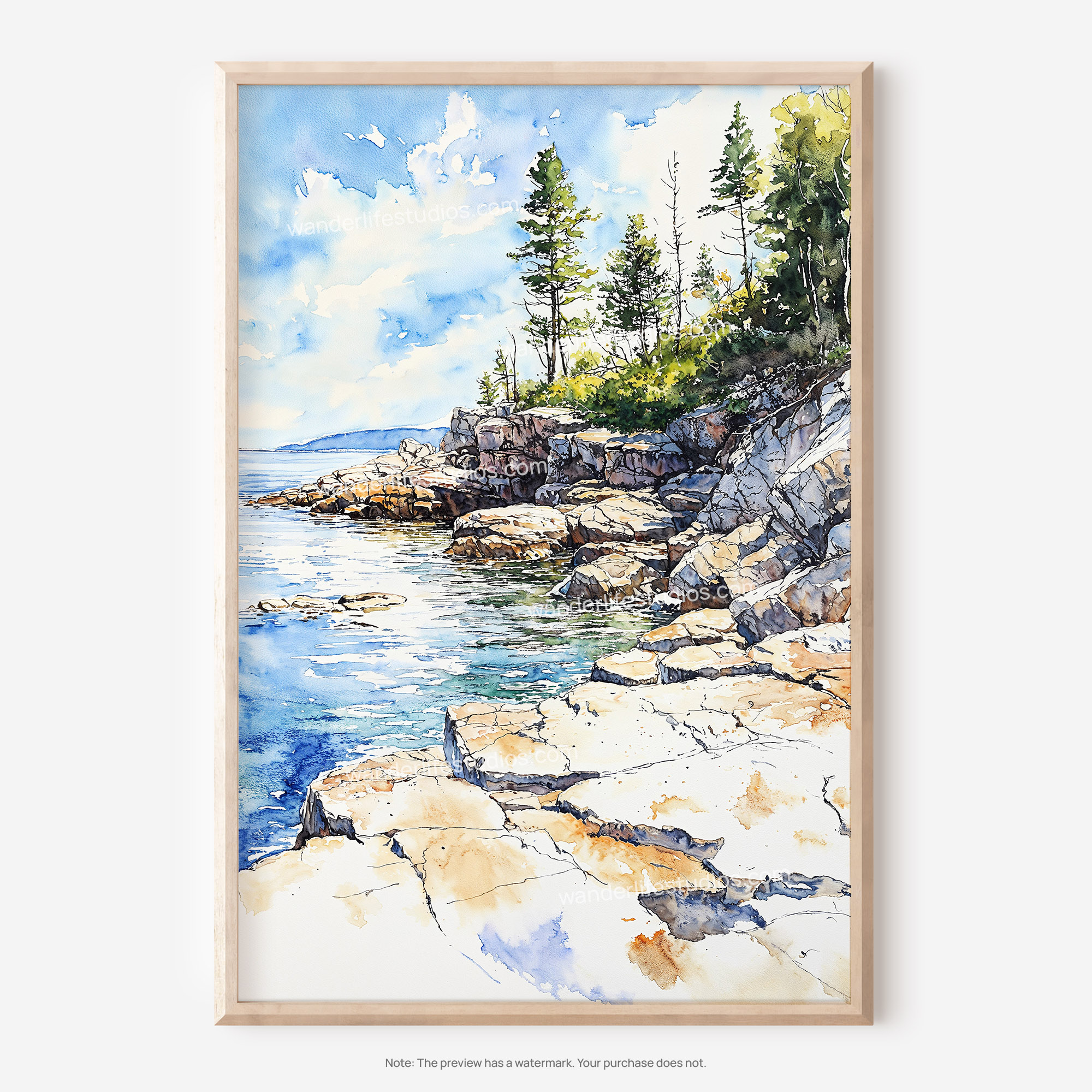 Acadia National Park Watercolor Landscape Art – Digital Download Wall Art