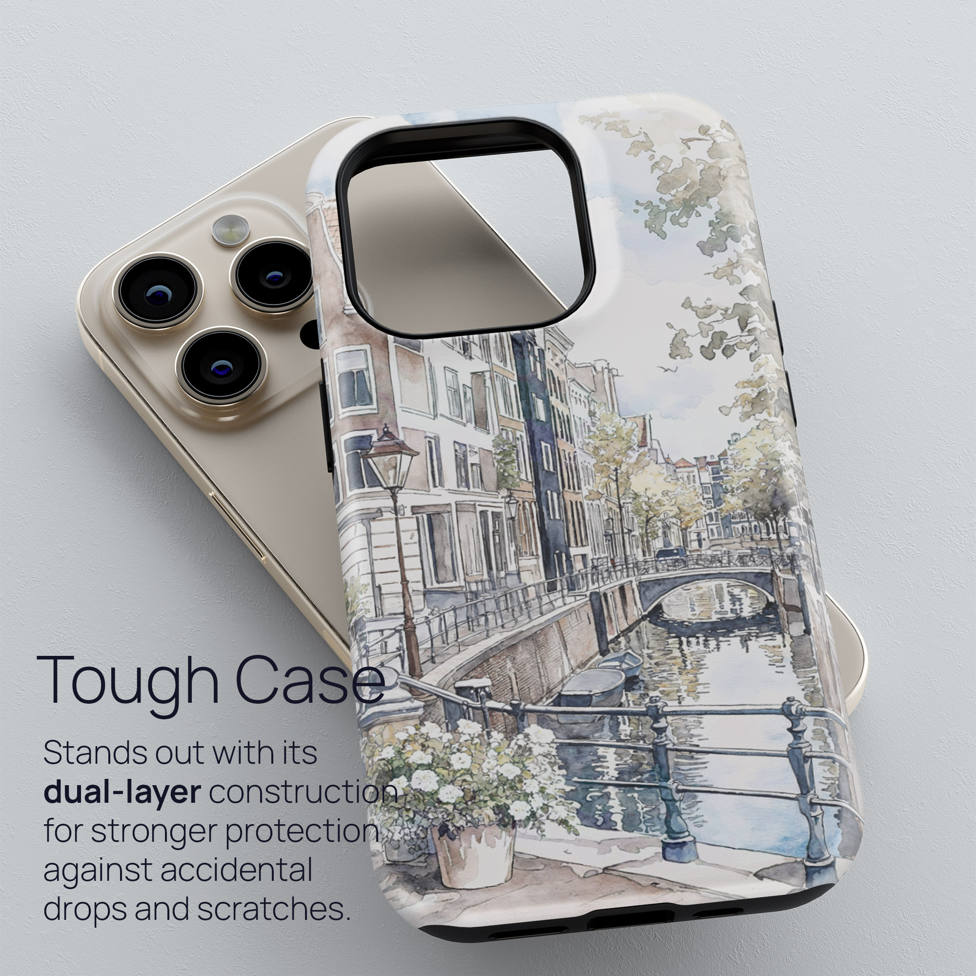 Amsterdam Canals Phone Case – Watercolor Art Inspired Design for Travel Enthusiasts