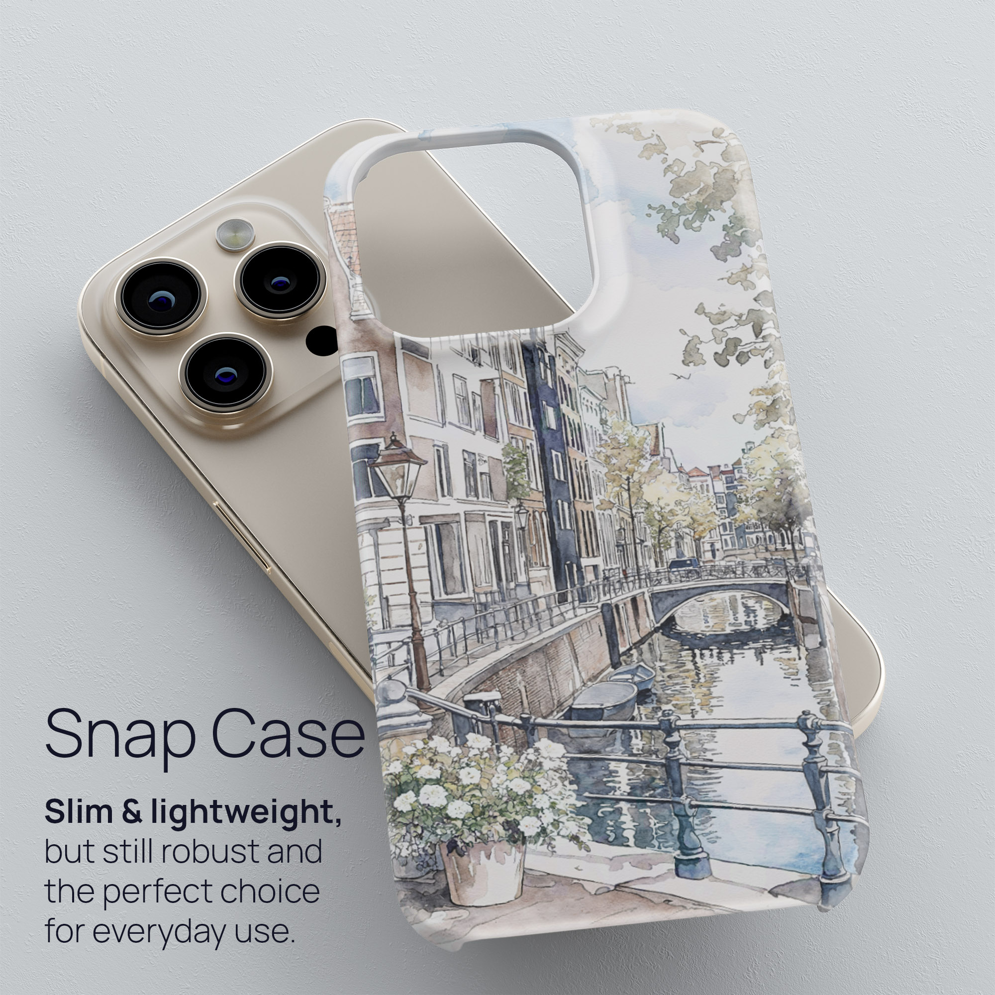 Capture the charm of Amsterdam with this watercolor art phone case featuring its iconic canals. Designed for everyday use, it offers a blend of style and practicality for any city enthusiast.