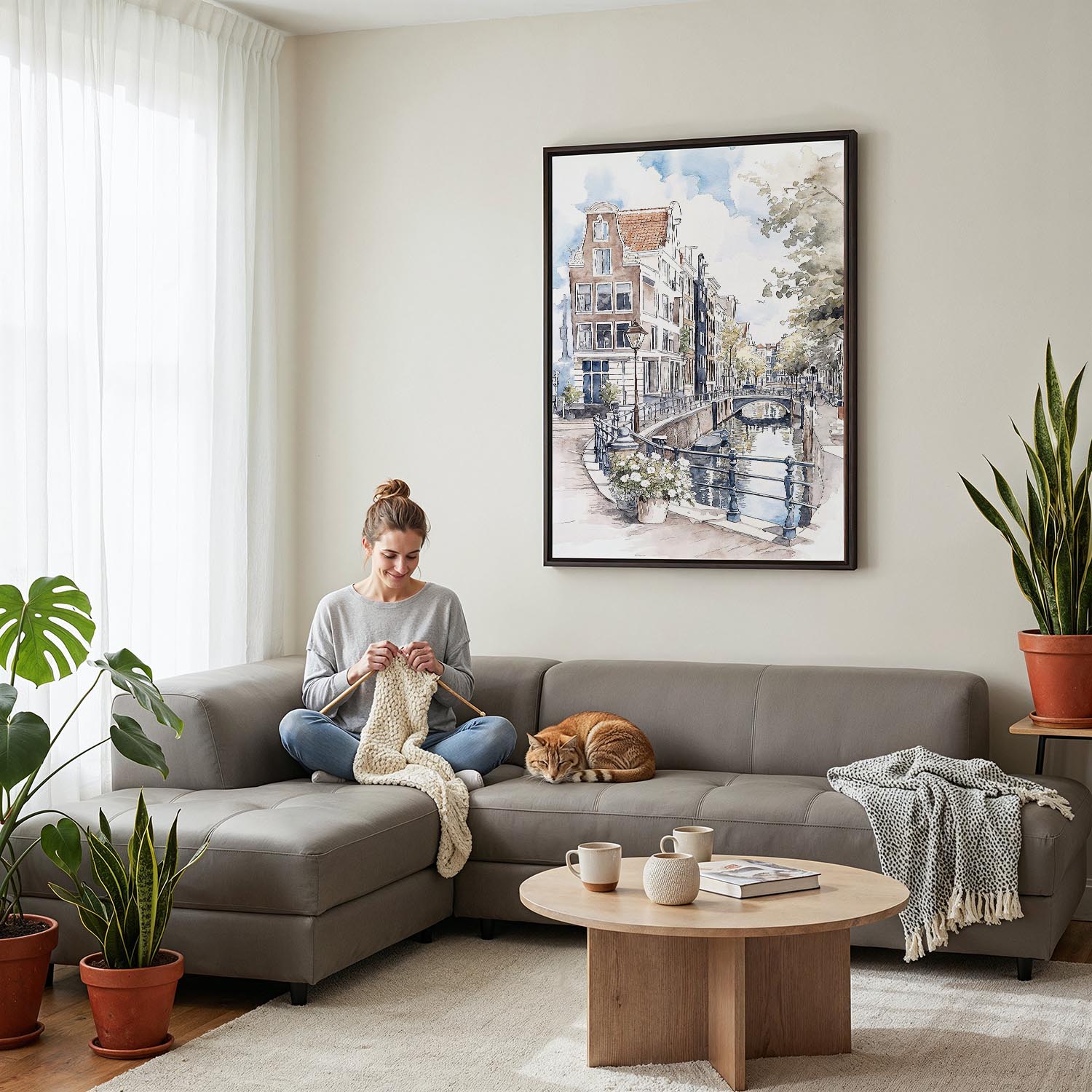 Amsterdam Watercolor Canvas Print – Scenic Canal District Wall Art