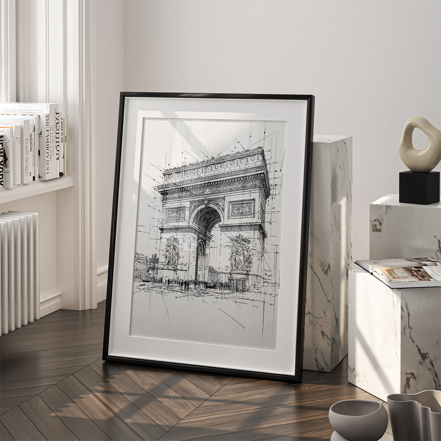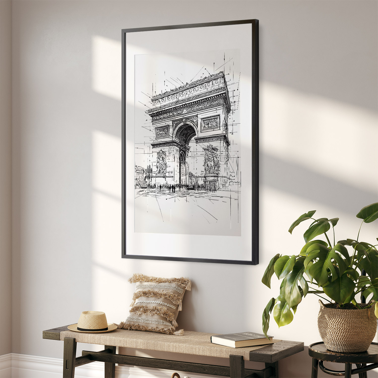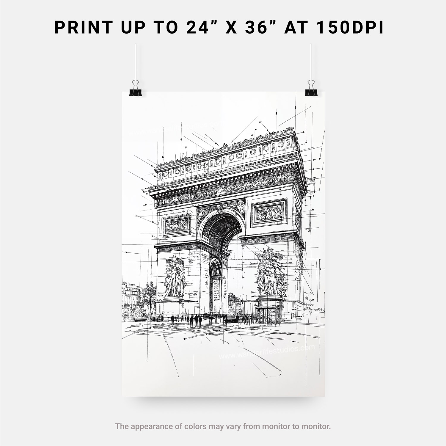 Enhance your space with this Arc De Triomphe digital download wall art. This detailed pencil drawing captures the essence of this iconic Parisian landmark, offering instant access for easy printing at home or your local print shop.