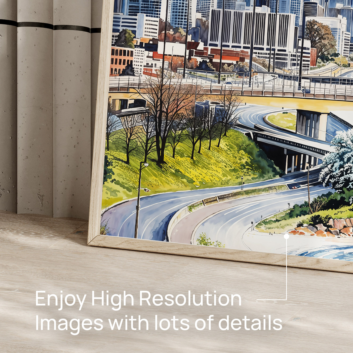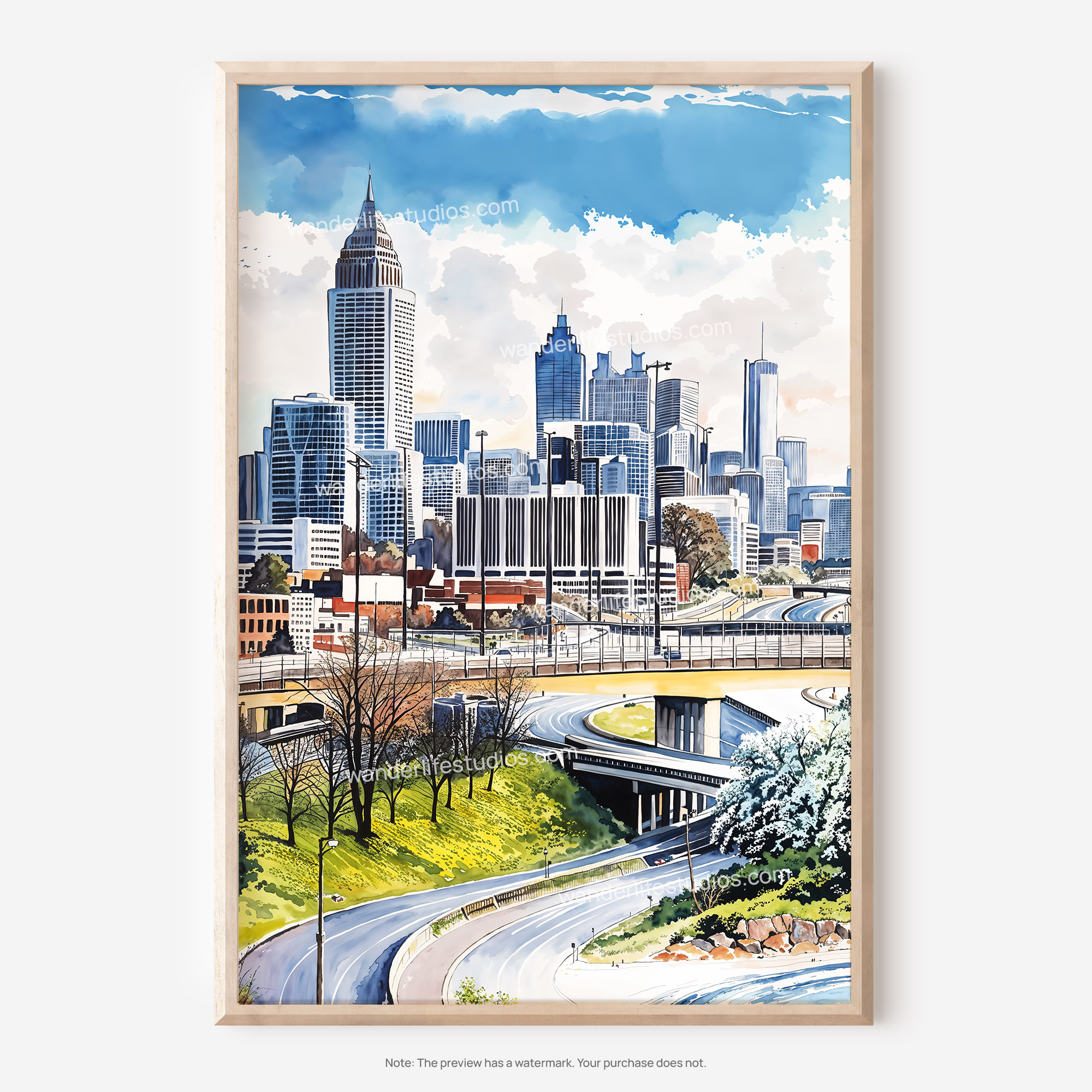 Atlanta Skyline Watercolor Art – Urban Landscape Digital Download