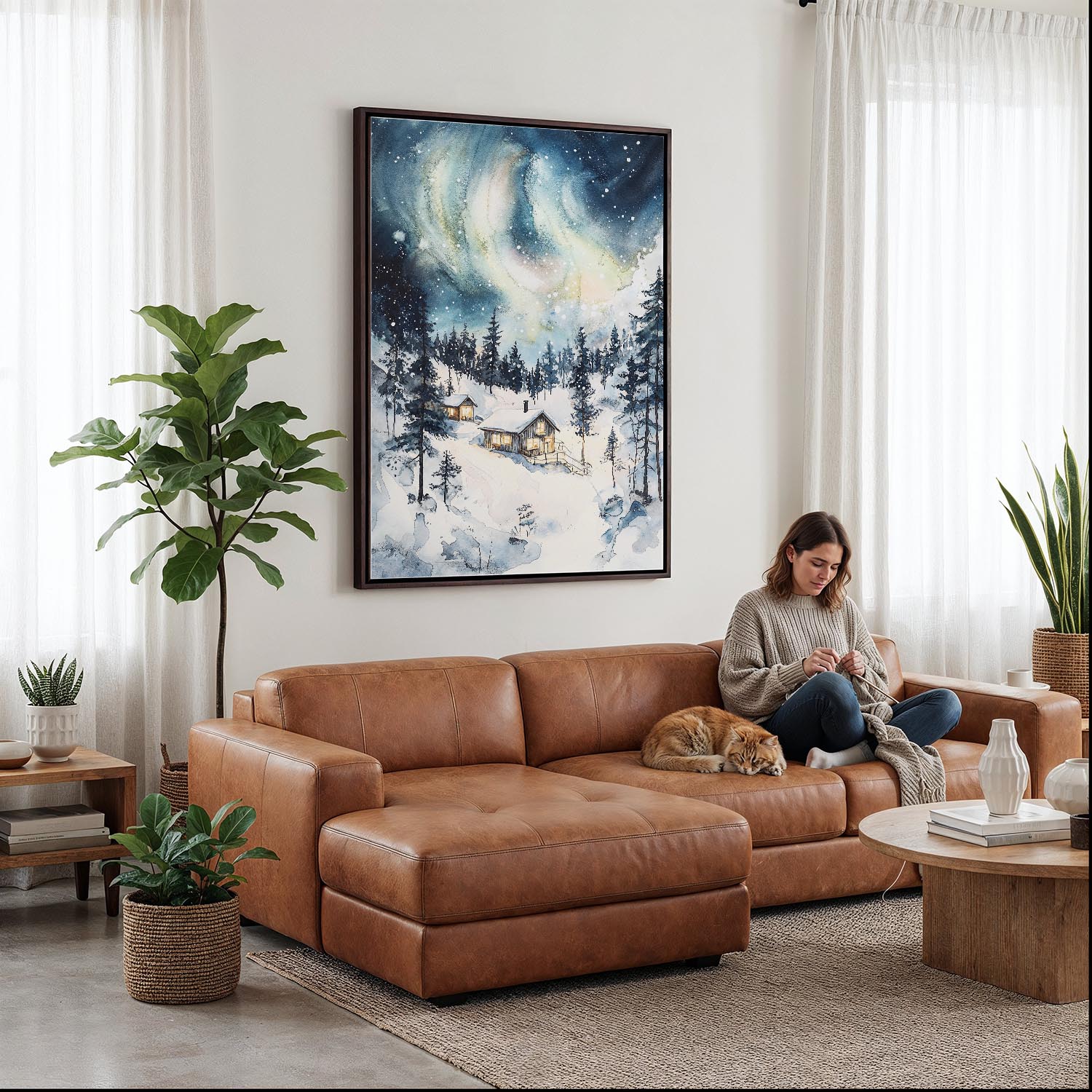 Bring the enchanting lights of Lapland into your home with this watercolor canvas print. Perfect for a cozy living room or a serene bedroom, it’s ready to hang and enjoy.