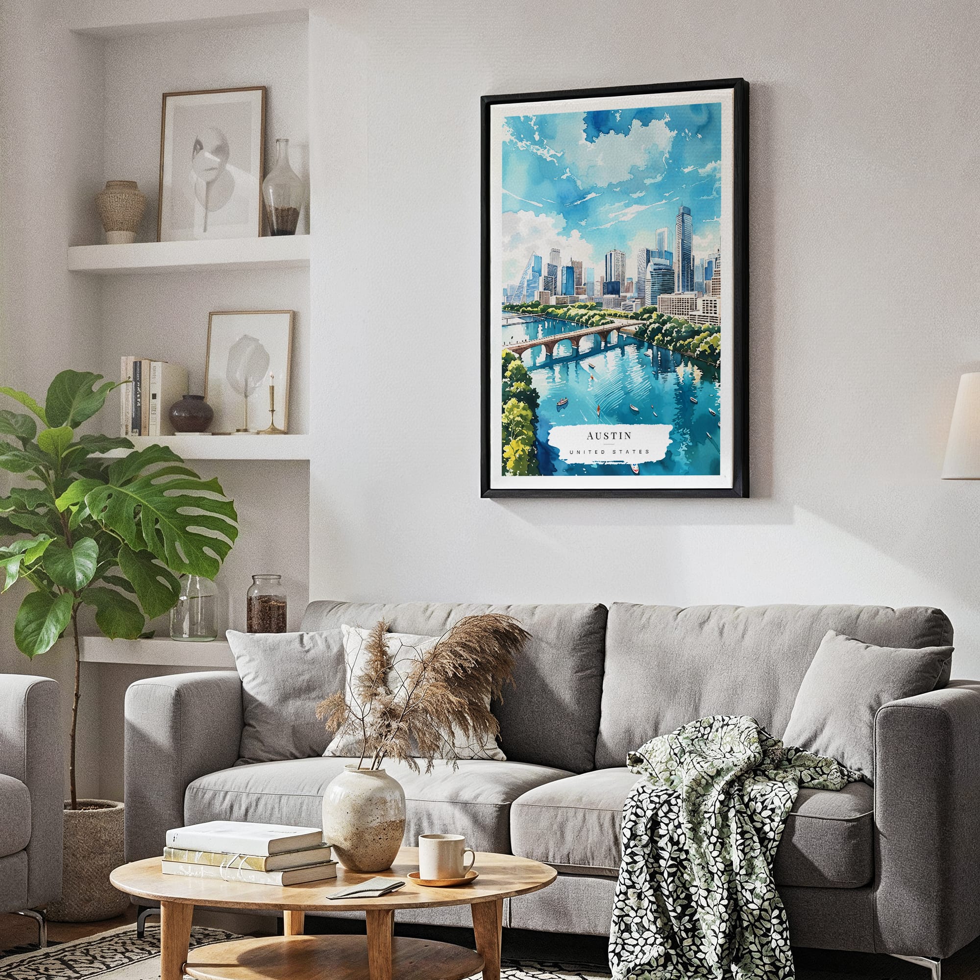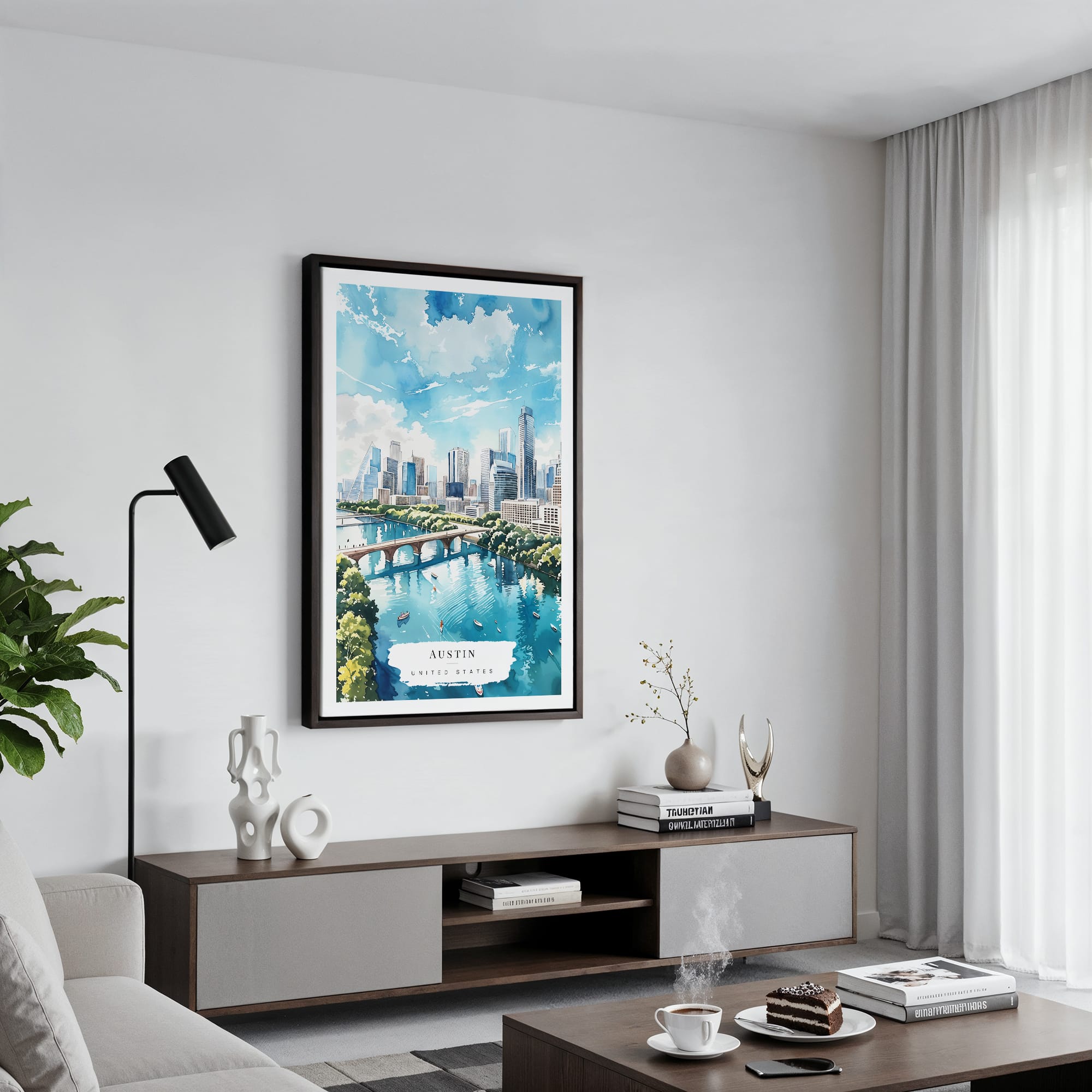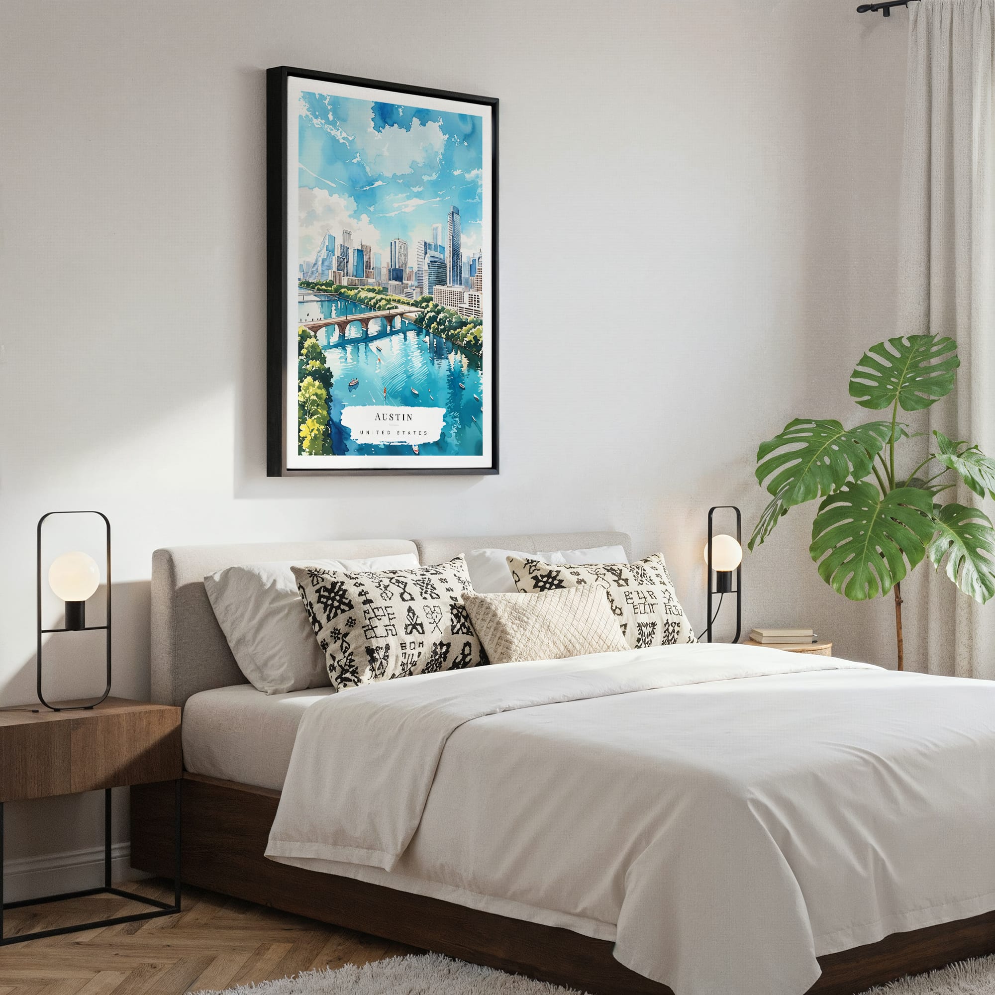 Austin Texas Watercolor Canvas Print – Tranquil Cityscape Wall Art