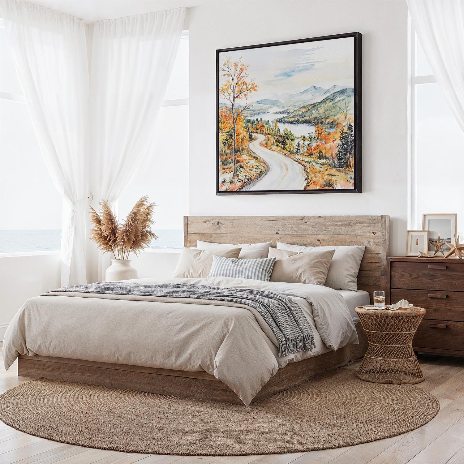 This square canvas print captures the essence of fall, highlighting a serene roadway surrounded by lush trees dressed in autumn colors. The unique 1:1 square format adds a balanced feel to any room, making it perfect for display above sofas or in hallways. Crafted from high-quality materials, including hand-stretched canvas and solid wood stretcher bars, this art piece offers durability and a matte finish that complements its beauty. US manufactured and focused on sustainability, it’s a wonderful choice for personal enjoyment or as a thoughtful gift for art lovers.