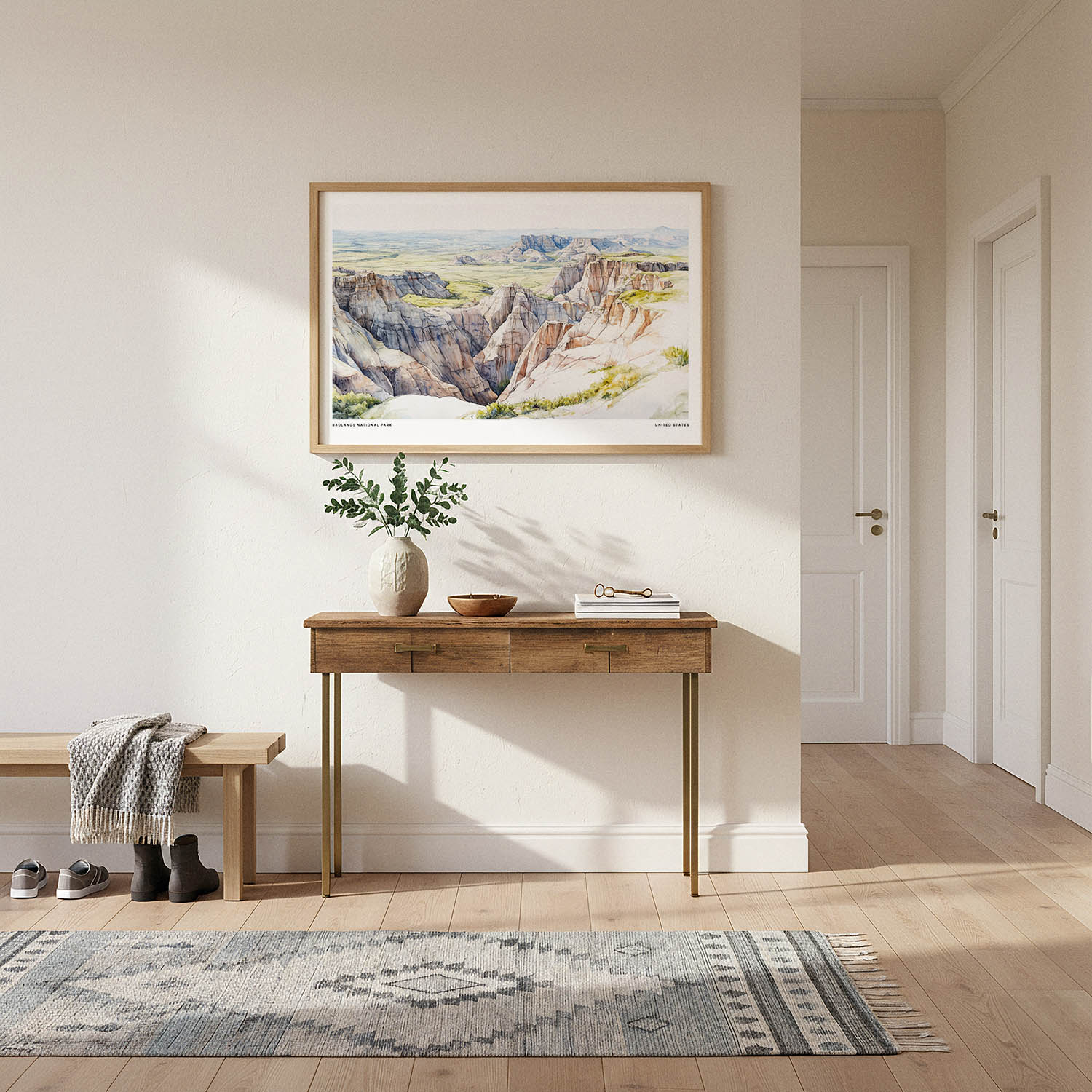 Badlands National Park Watercolor Art Print – Captivating Landscape Wall Decor