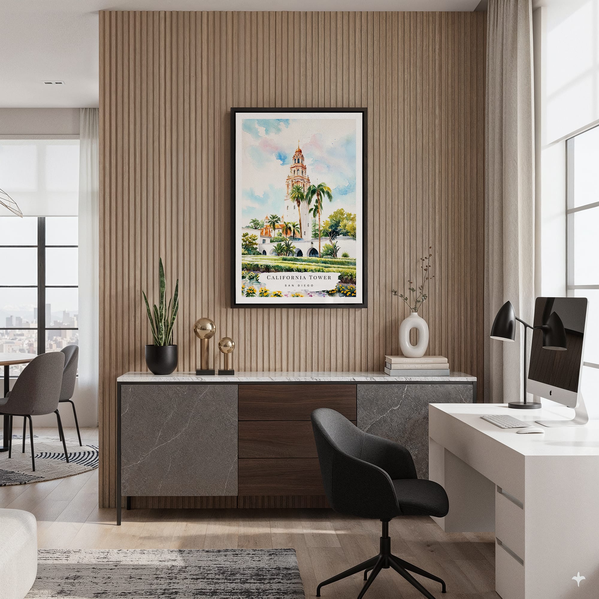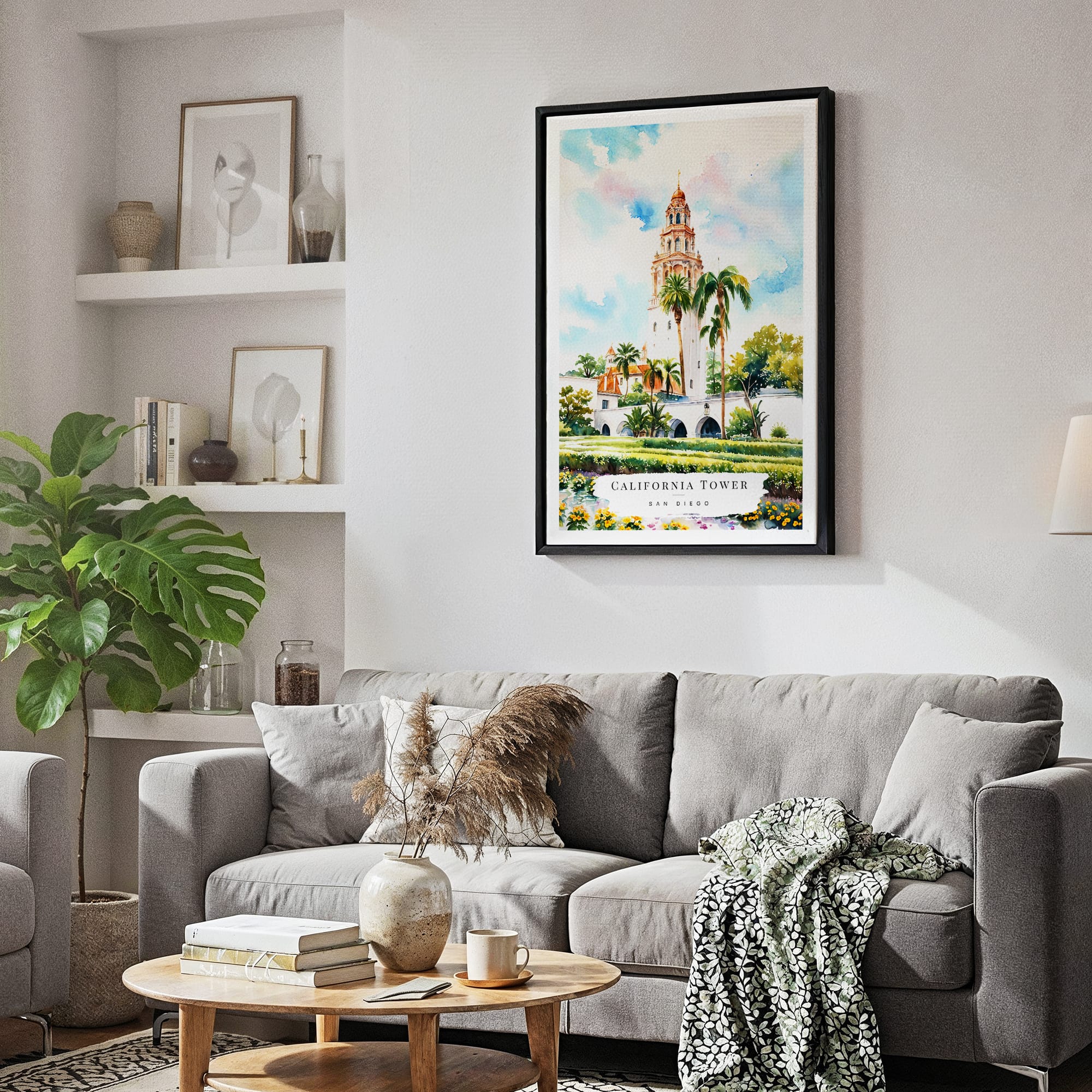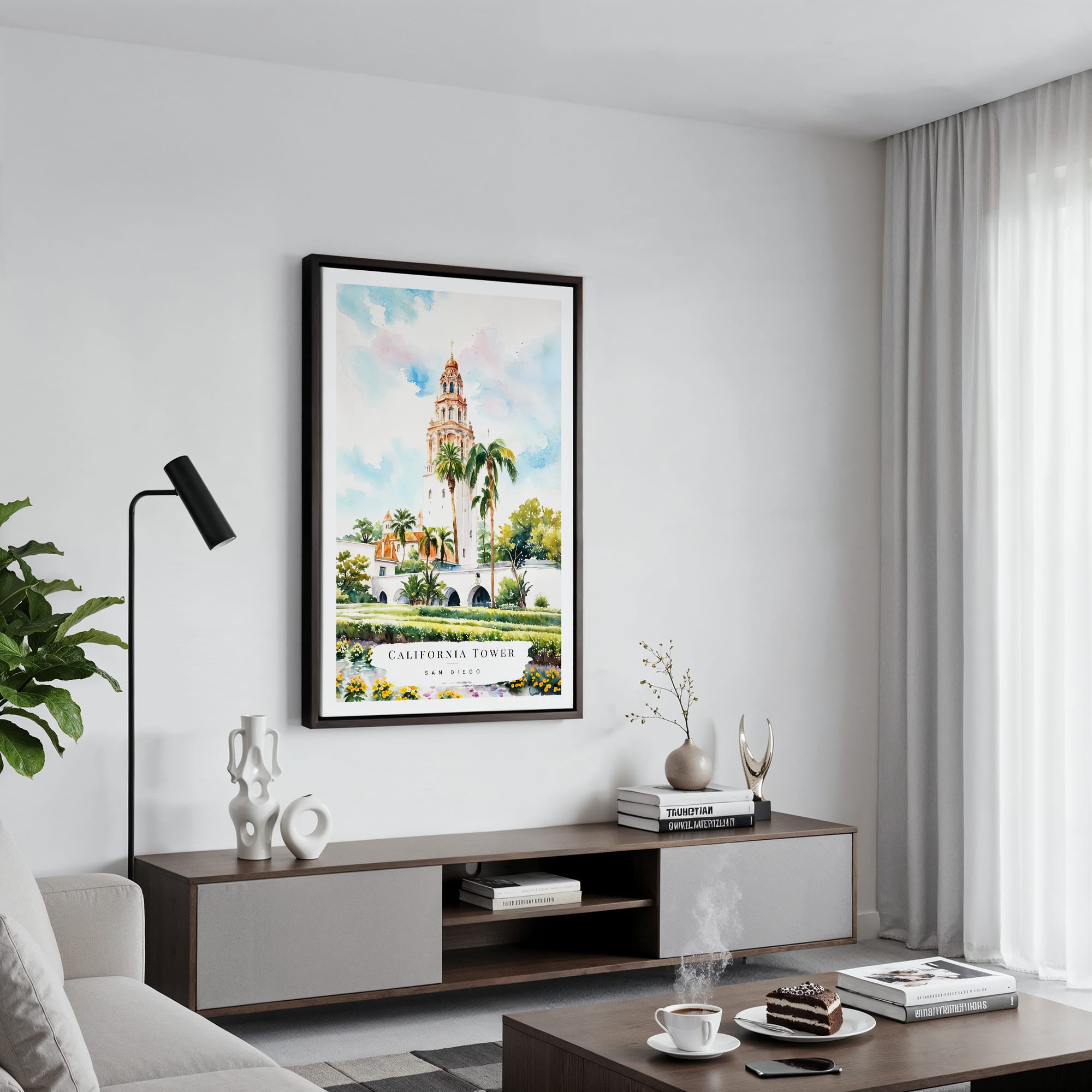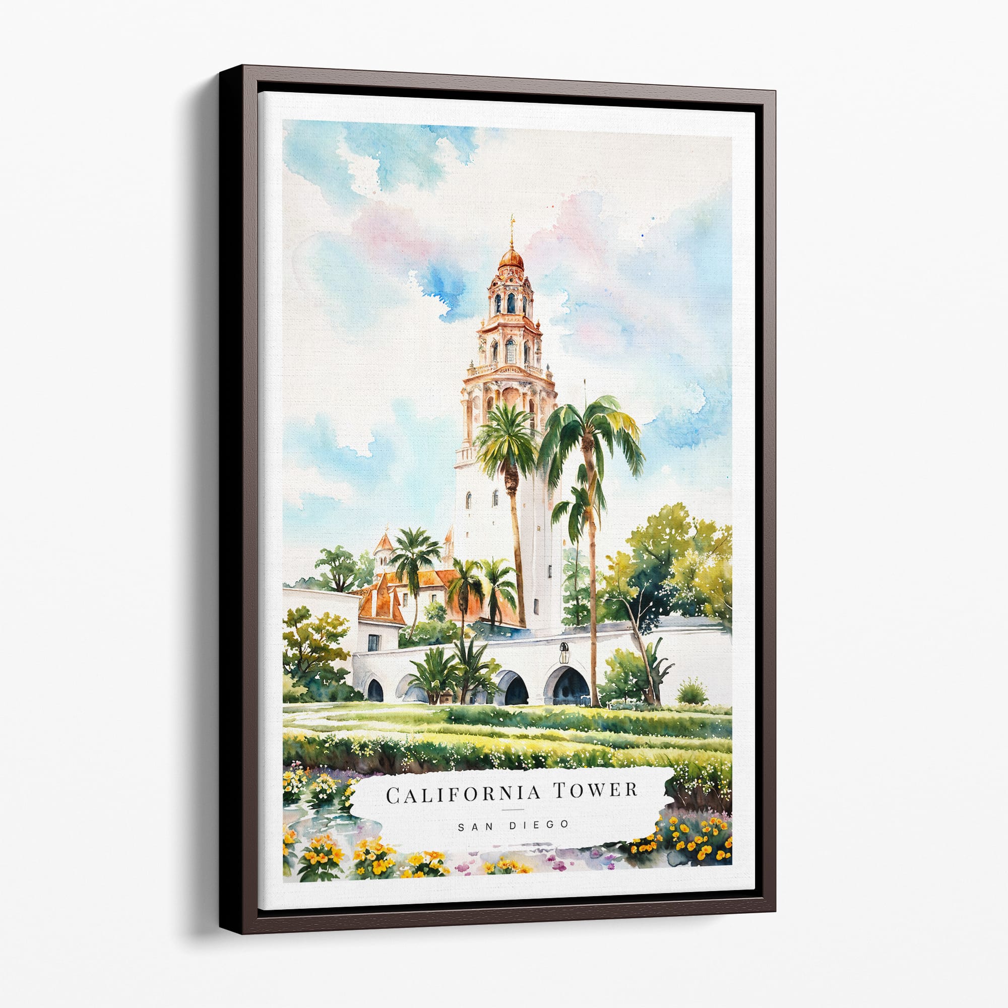 Balboa Park California Tower Watercolor Canvas Print – Vibrant San Diego Wall Art
