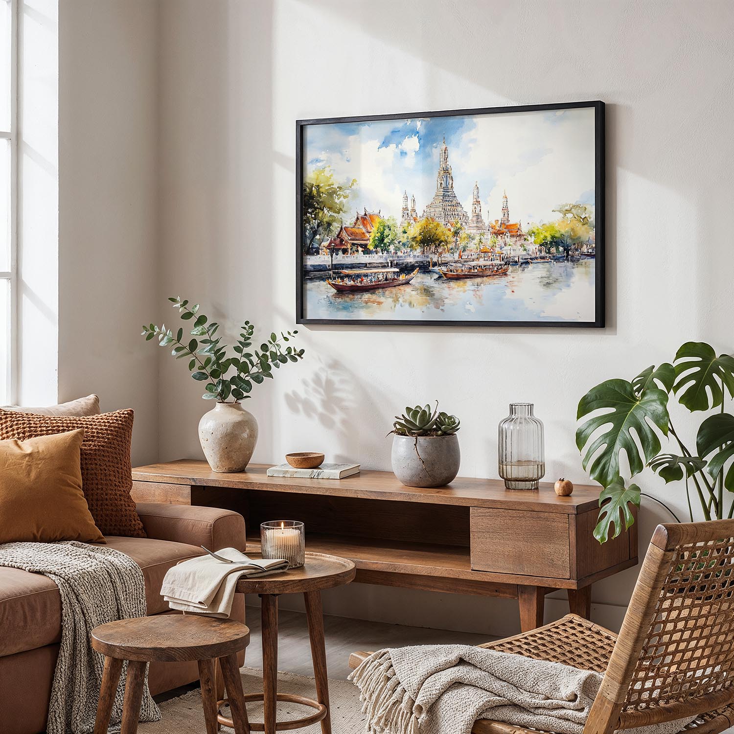 Transform your space with this serene watercolor of Bangkok’s Wat Arun, capturing the temple’s intricate details and vibrant surroundings. Enjoy the convenience of instant download, allowing for easy printing at home or your preferred print shop.