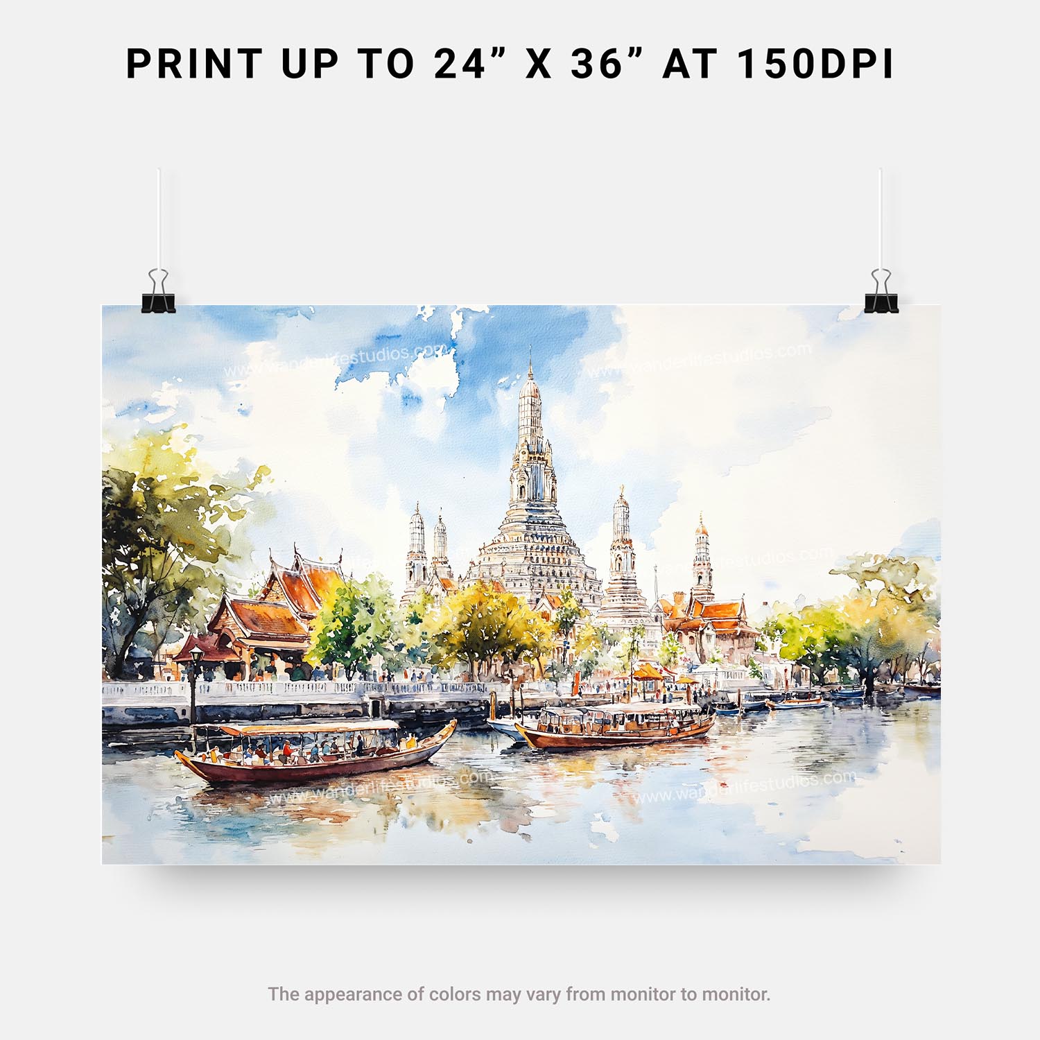 Bangkok Wat Arun Temple of Dawn Watercolor Art – Digital Download