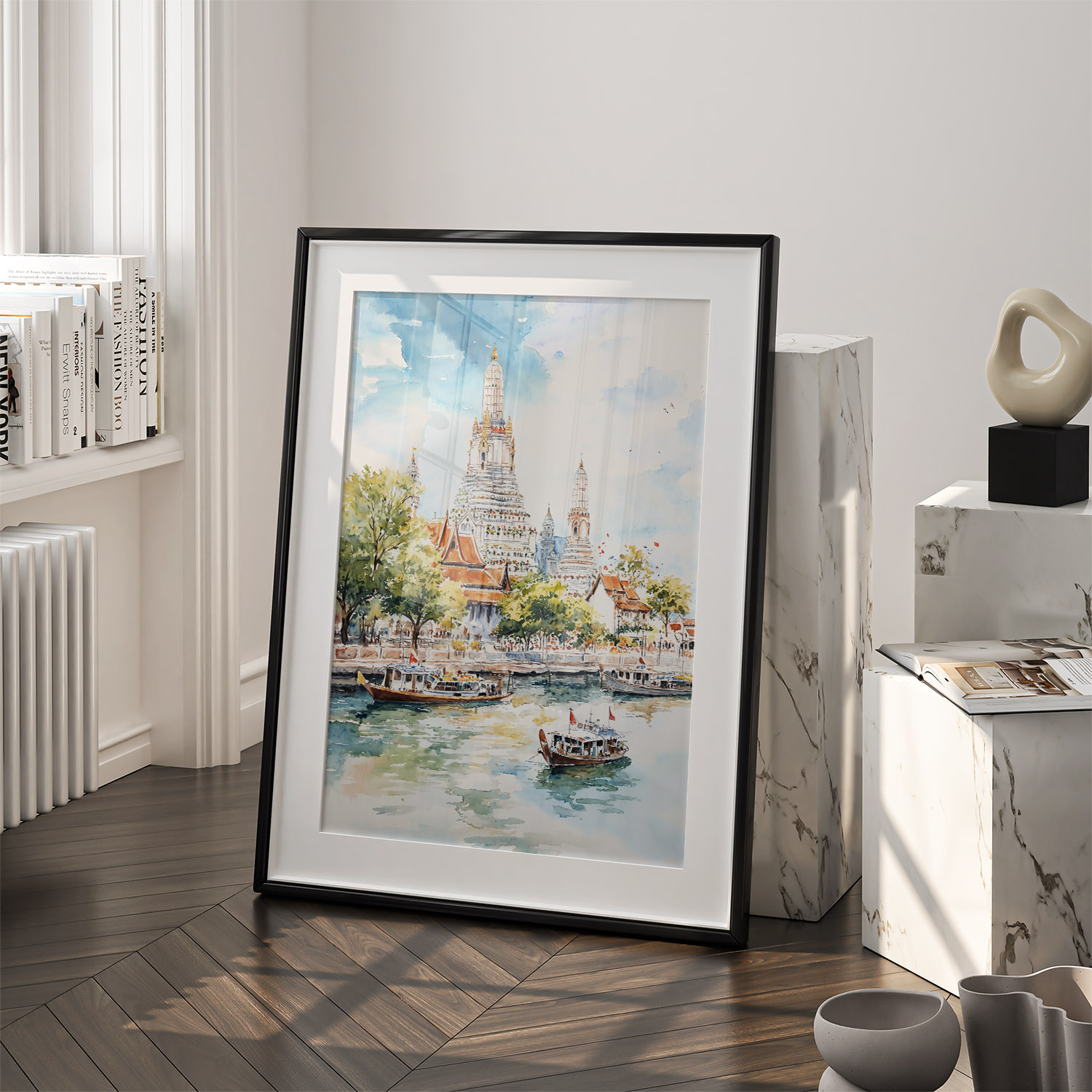 Bangkok Wat Arun Watercolor Art – Digital Download of Iconic Temple