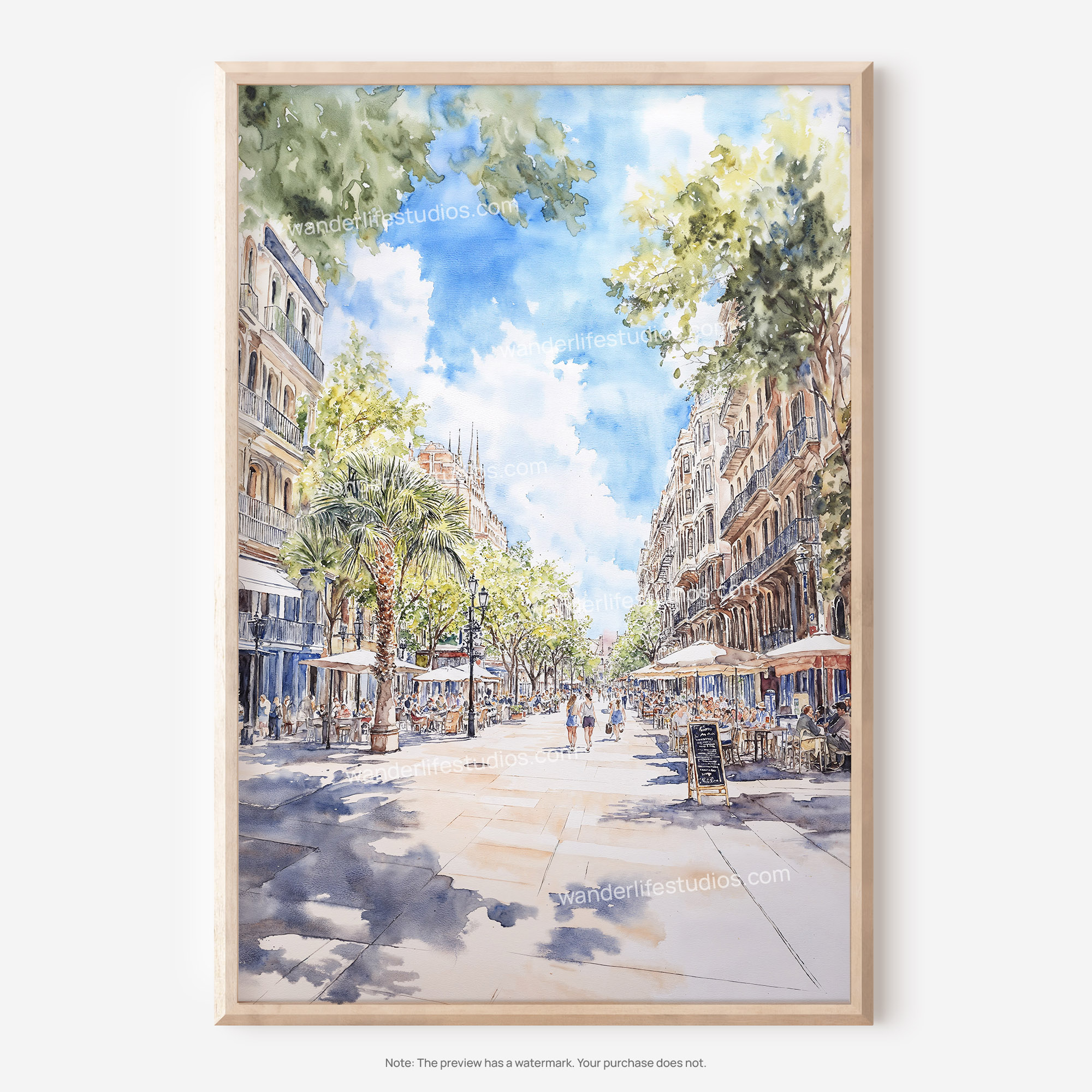 Barcelona Las Ramblas Watercolor Art – Digital Download Wall Decor