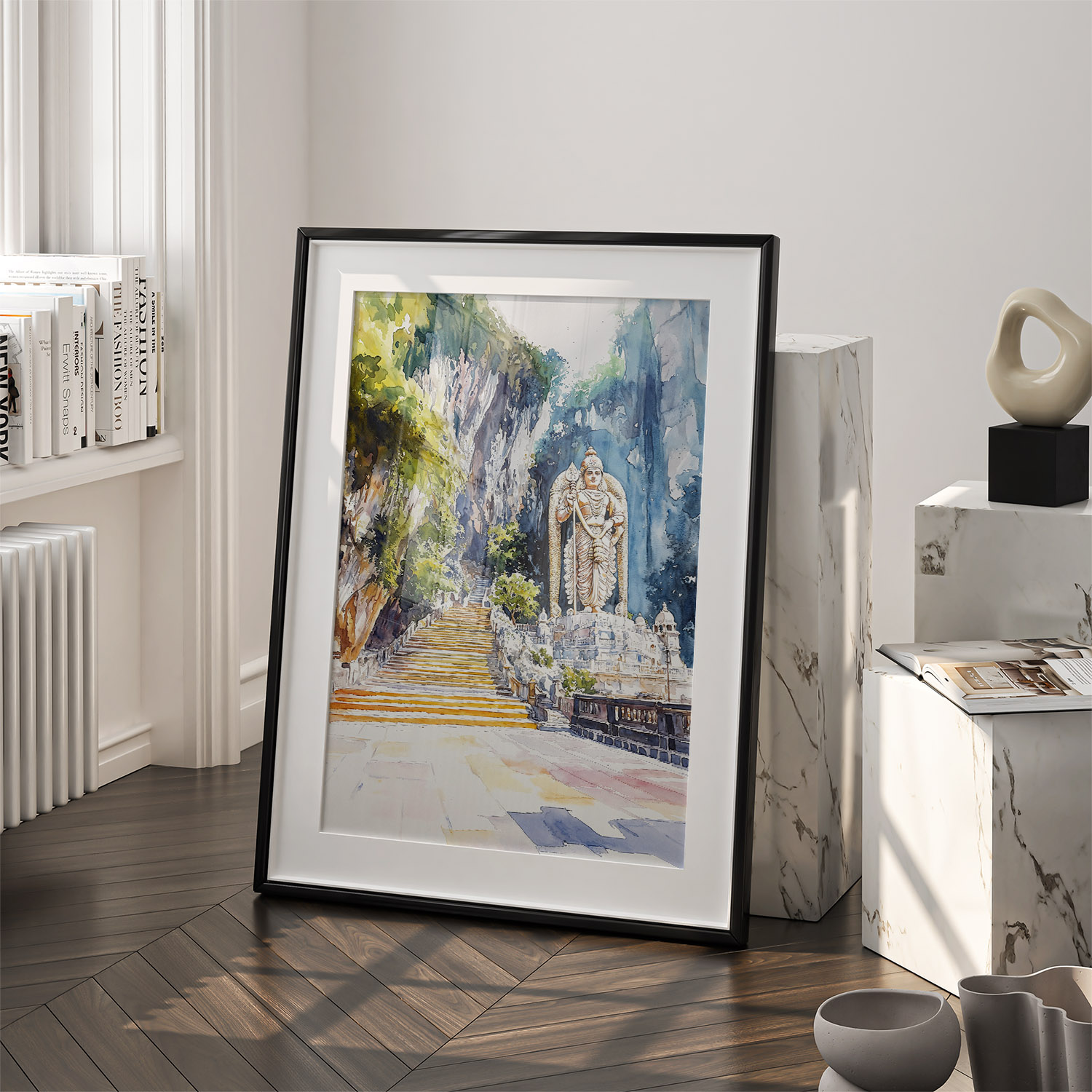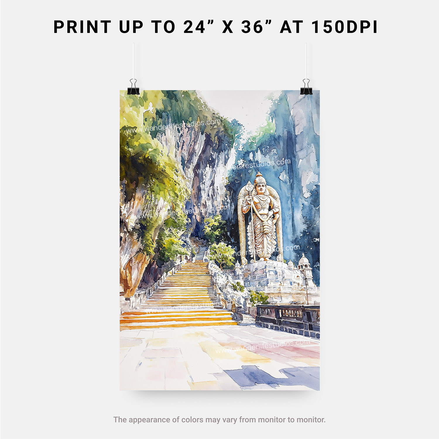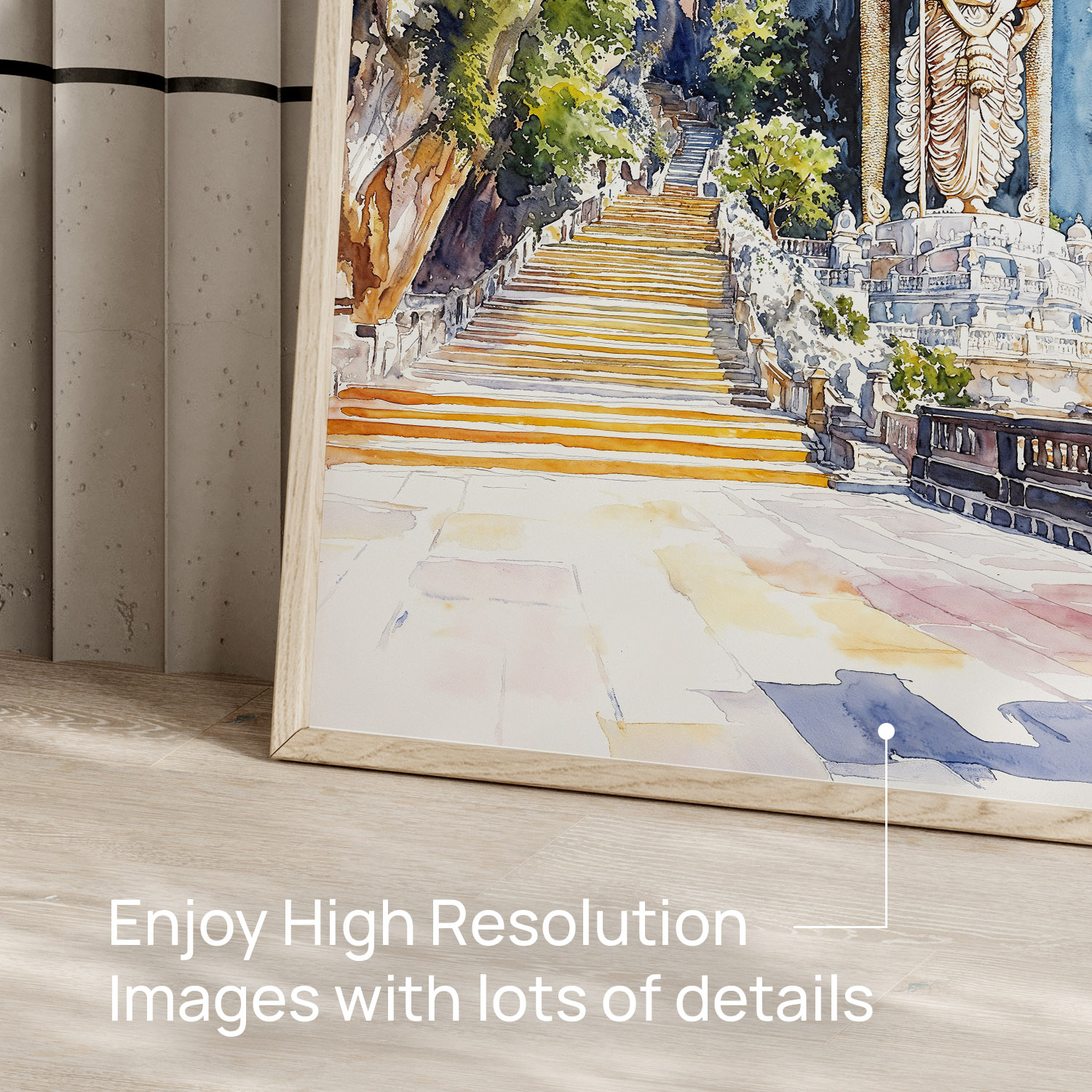 Batu Caves Watercolor Art – Digital Download Wall Art for Home Decor