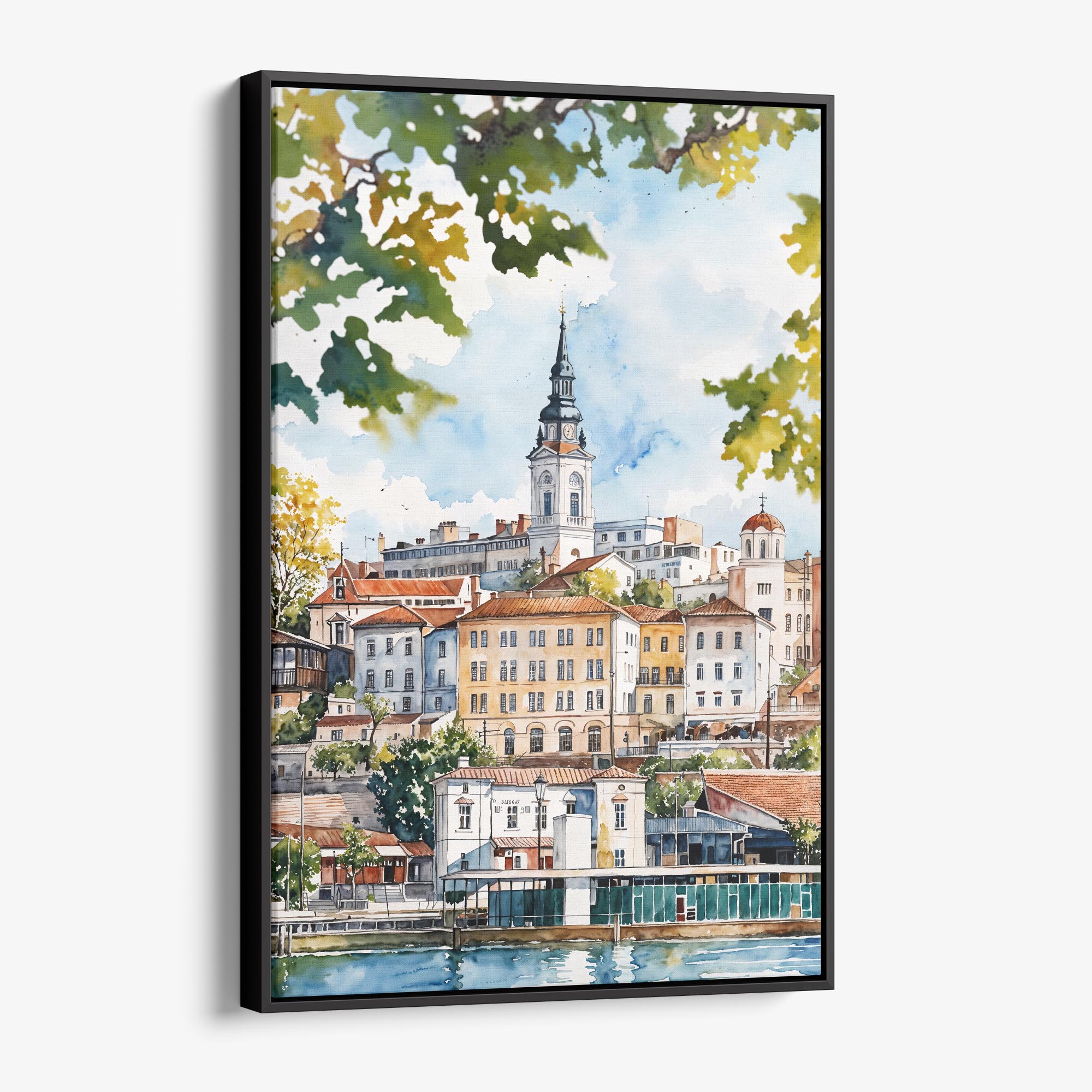 Belgrade Watercolor Canvas Print – Charming Cityscape Wall Art
