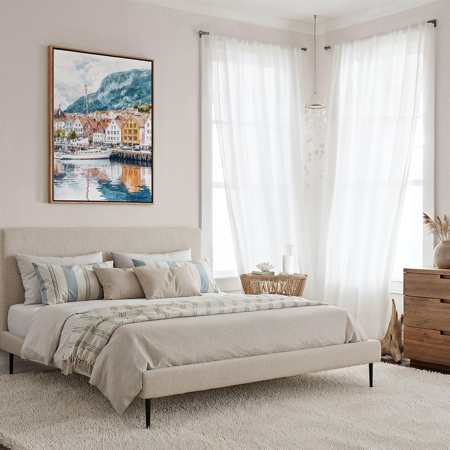 Capture the charm of Bergen’s harbor with this watercolor canvas print. Ideal for your living room, bedroom, or office, it’s ready to hang and enrich any space.
