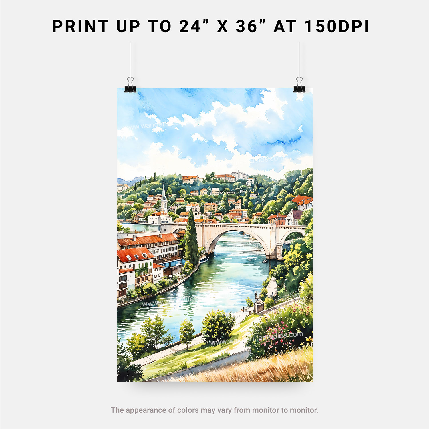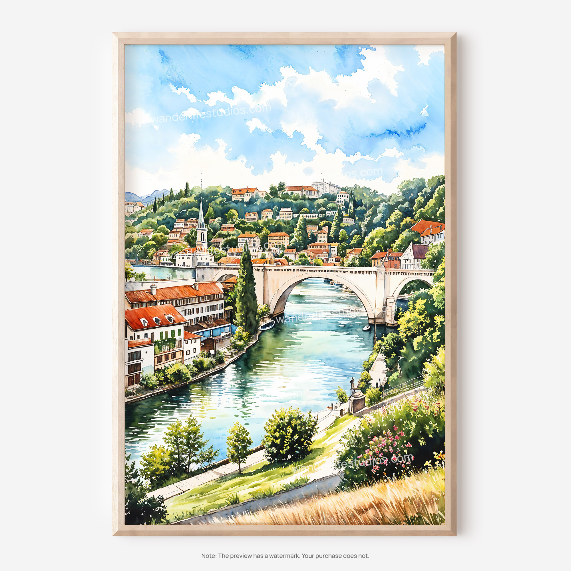 Bern, Switzerland Watercolor Art Print – Digital Download Wall Art