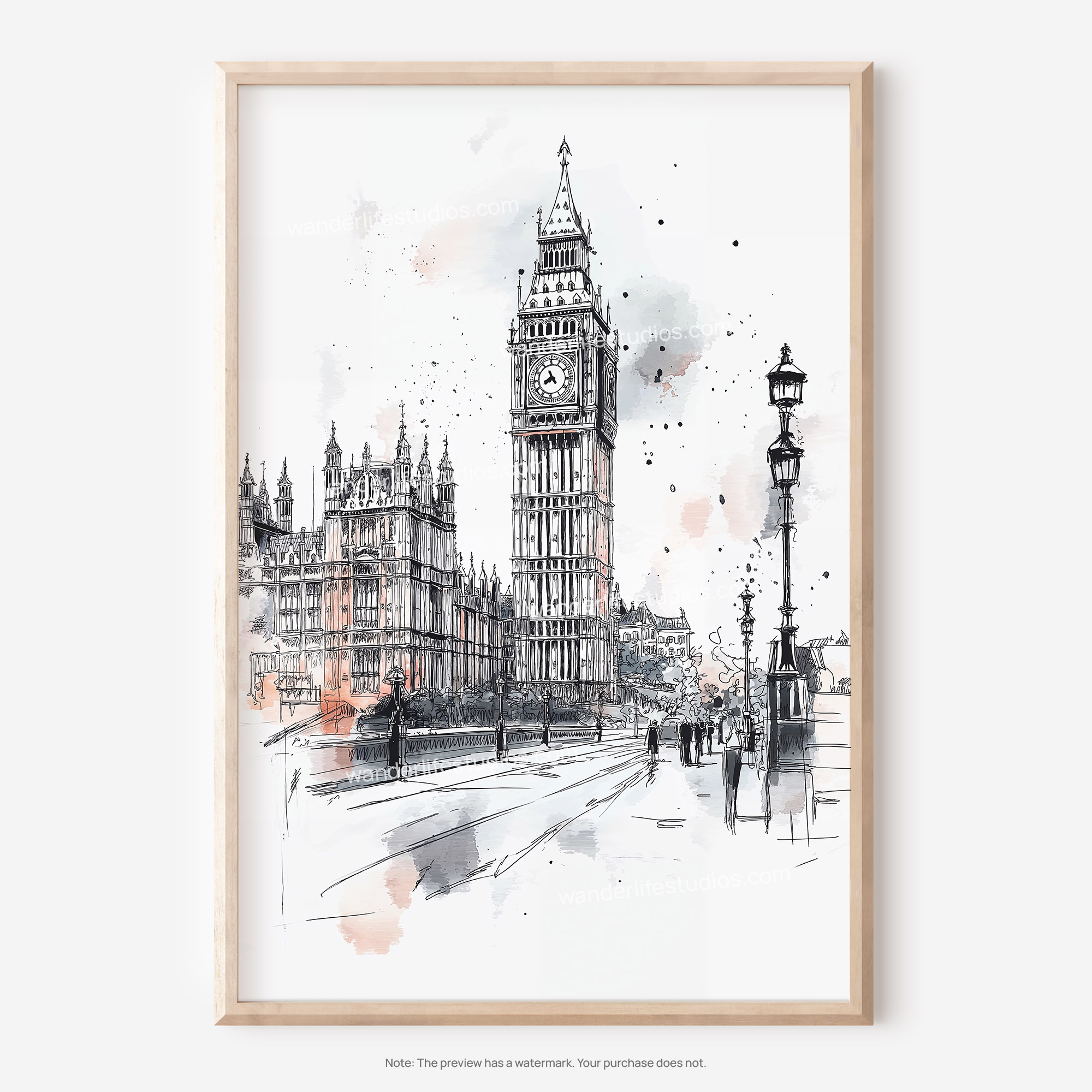 This artwork beautifully captures the iconic Big Ben in London through a detailed pencil drawing. Its elegant design evokes a sense of history and travel, making it an ideal addition to various spaces like living rooms, bedrooms, or offices. Delivered as a high-resolution JPG file, you can print it easily at home or through a local print shop. Enjoy the instant access to artwork that brings a piece of London into your everyday life.