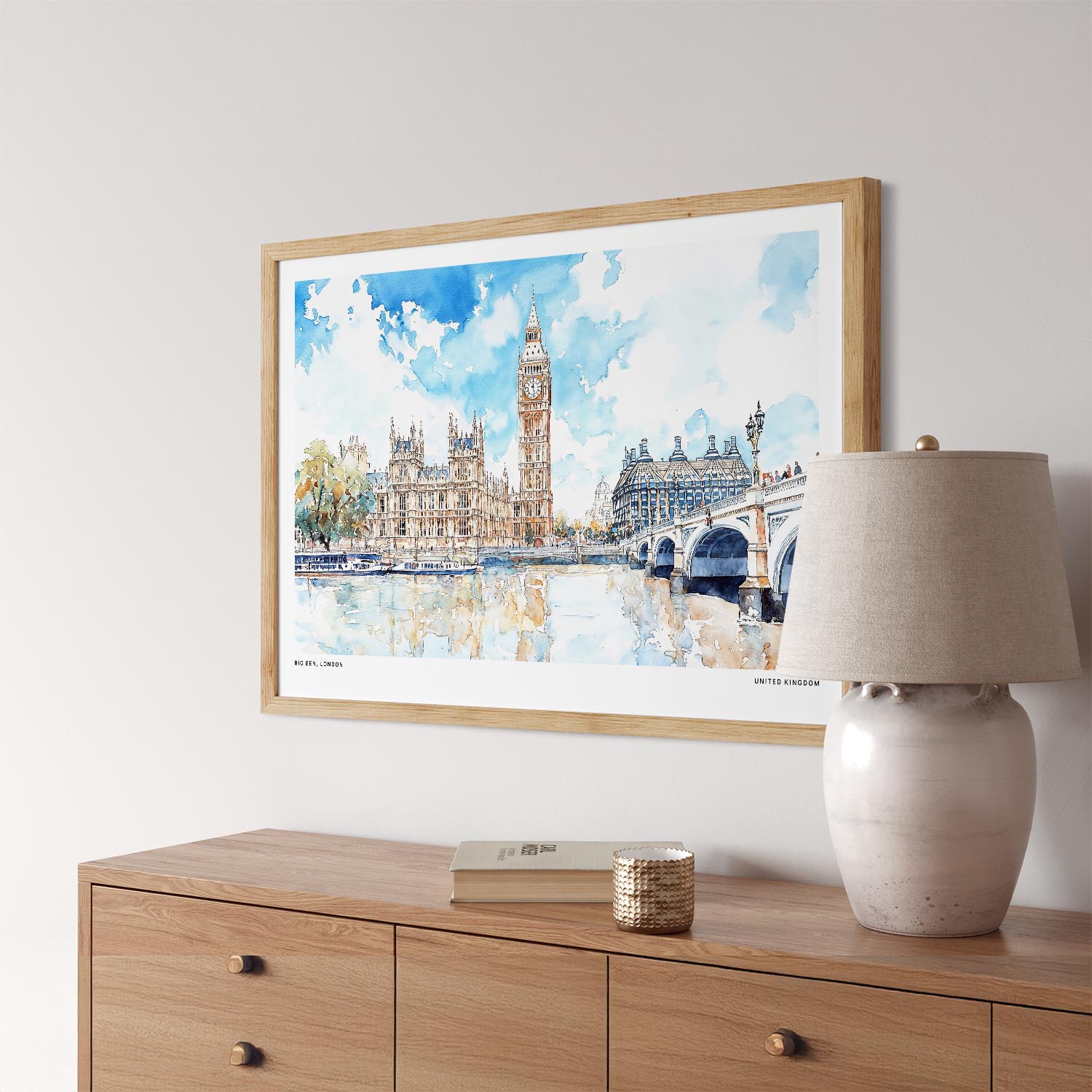 Bring London’s historic charm into your home with this watercolor art print of Big Ben. It’s a delightful addition to your living room, office, or any space that needs a touch of British elegance.