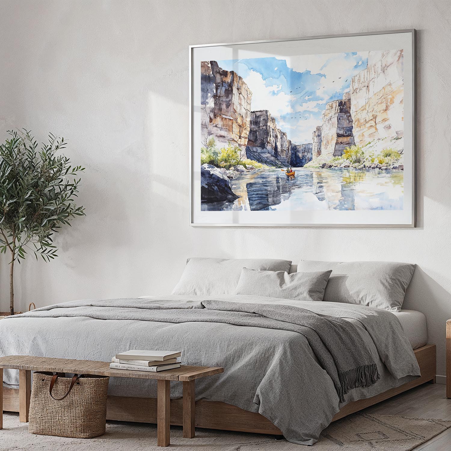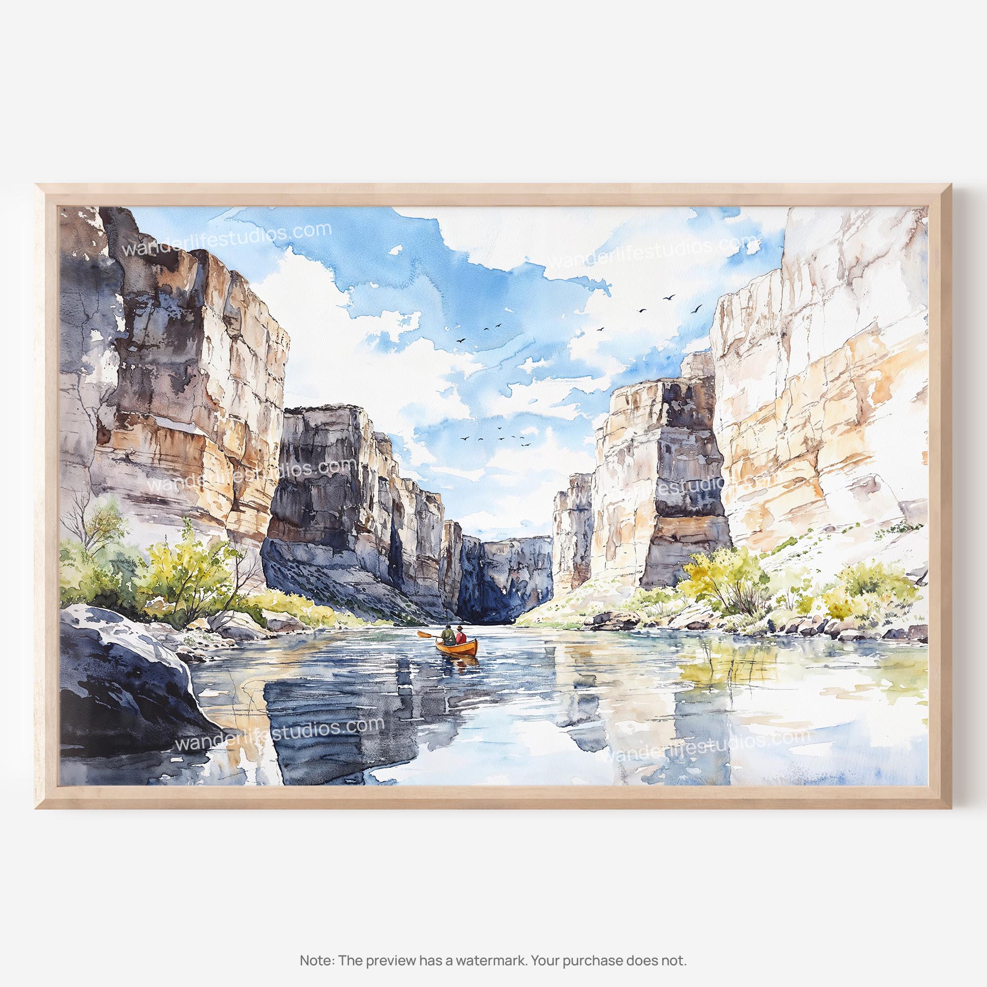 This lovely digital download showcases the stunning rock formations and serene waters of Big Bend National Park. The warm, inviting colors evoke the spirit of adventure and nature, making it a great addition to any living area. Delivered as a high-resolution image file, you can quickly print this artwork at home or through a local service. Ideal for homes, offices, and cozy spaces, this instant download offers flexibility and joy right away.