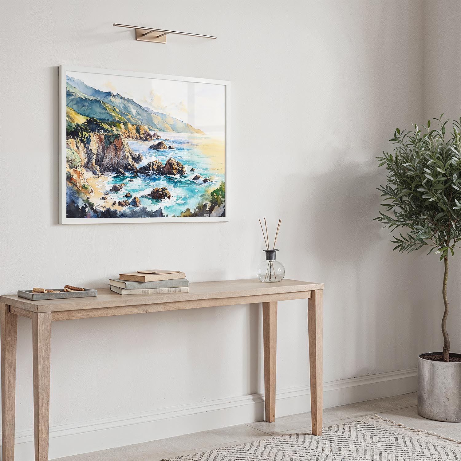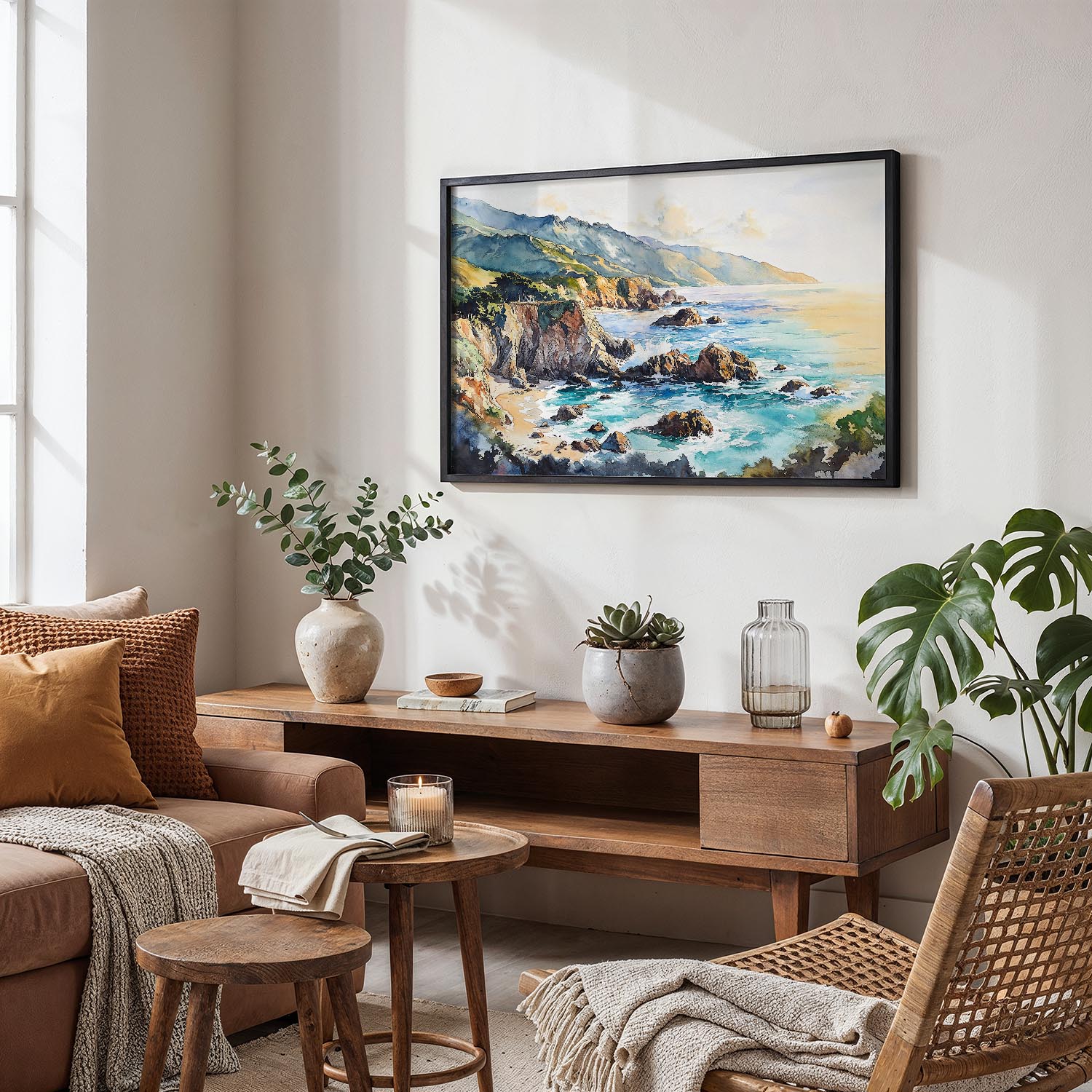 This digital download wall art captures the breathtaking coastline of Big Sur with its vibrant colors and serene waves. Enjoy the instant access and ease of printing this piece at home or through a local shop.