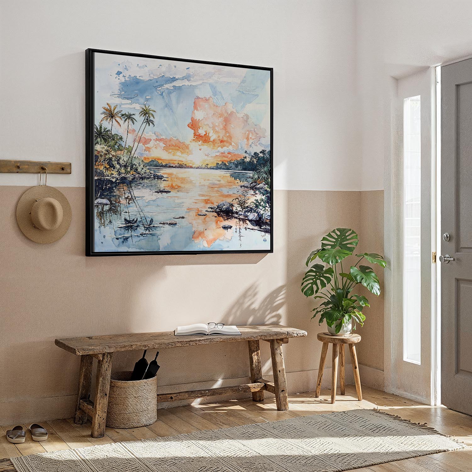Biscayne National Park Canvas Print | Tropical Landscape Square Art in Watercolor Style