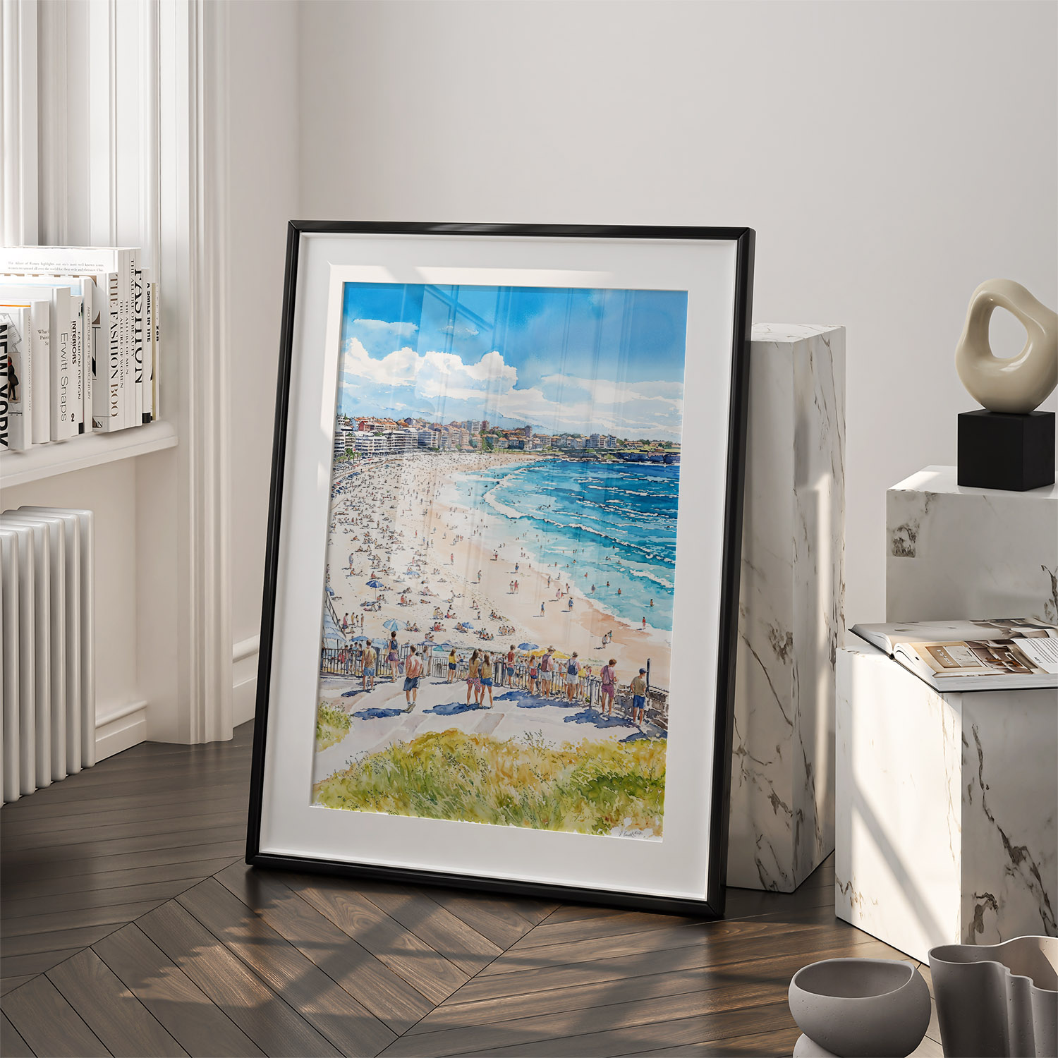 Bondi Beach Watercolor Art – Coastal Scene Digital Download