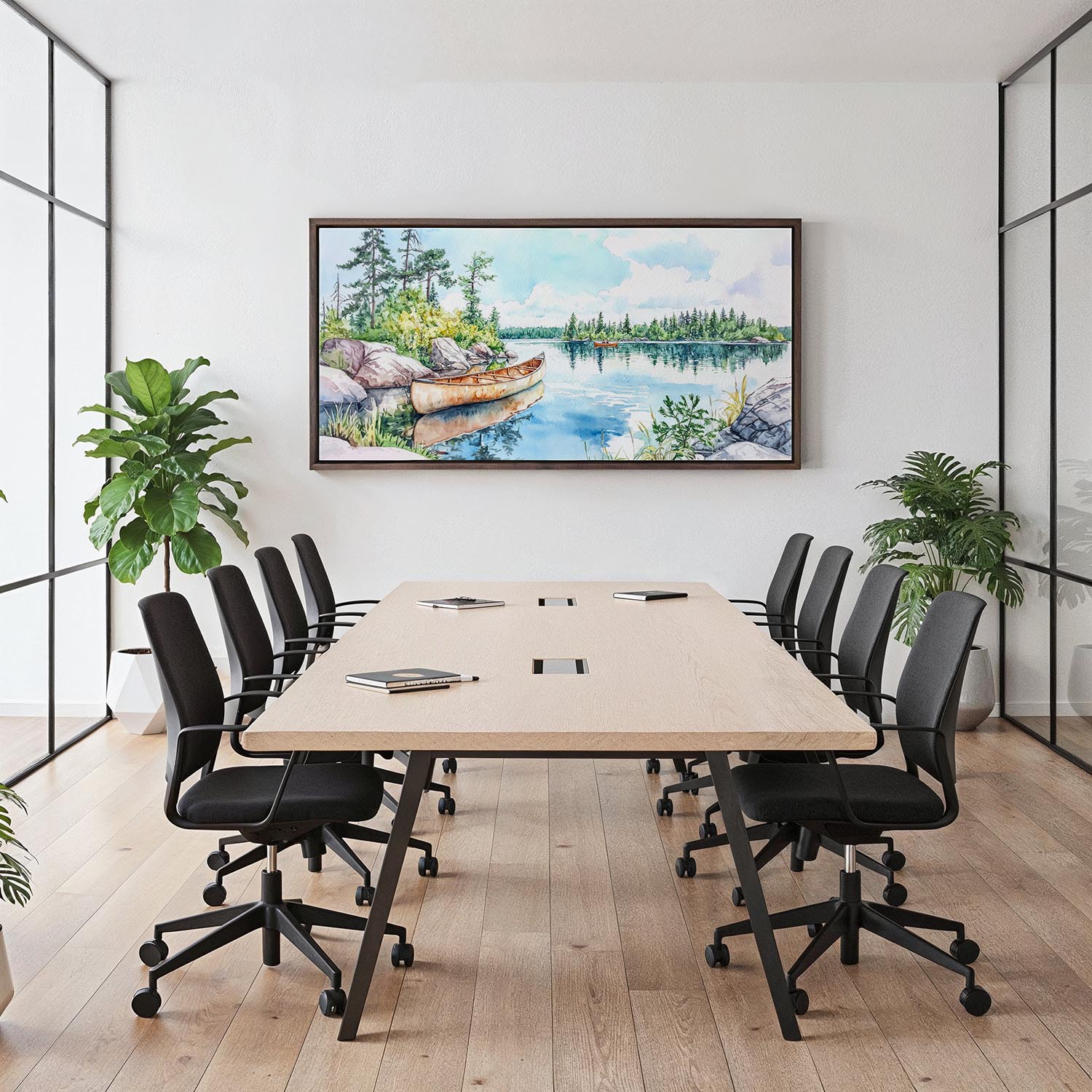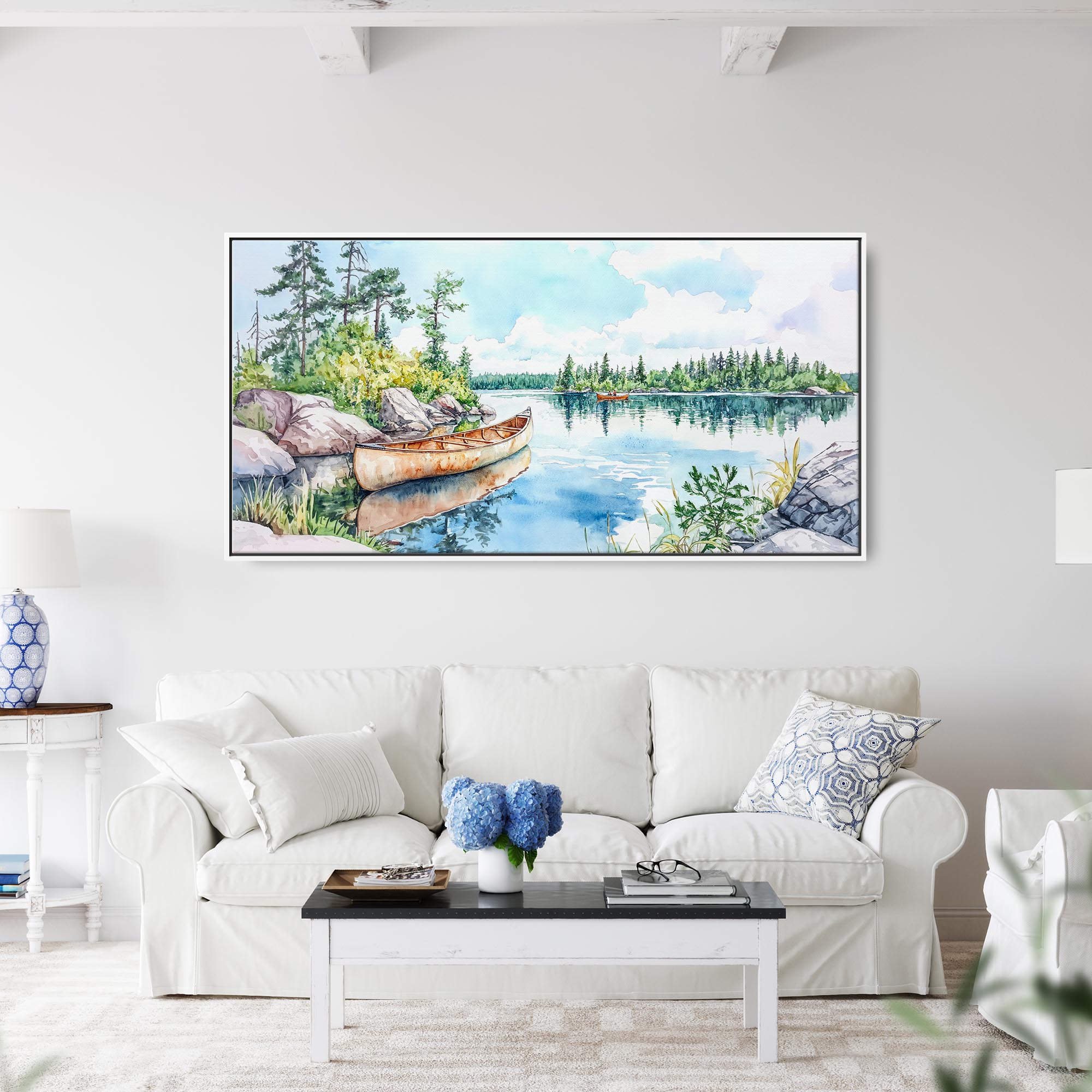 Boundary Waters Canoe Panorama Canvas Print – Watercolor Landscape Wall Art
