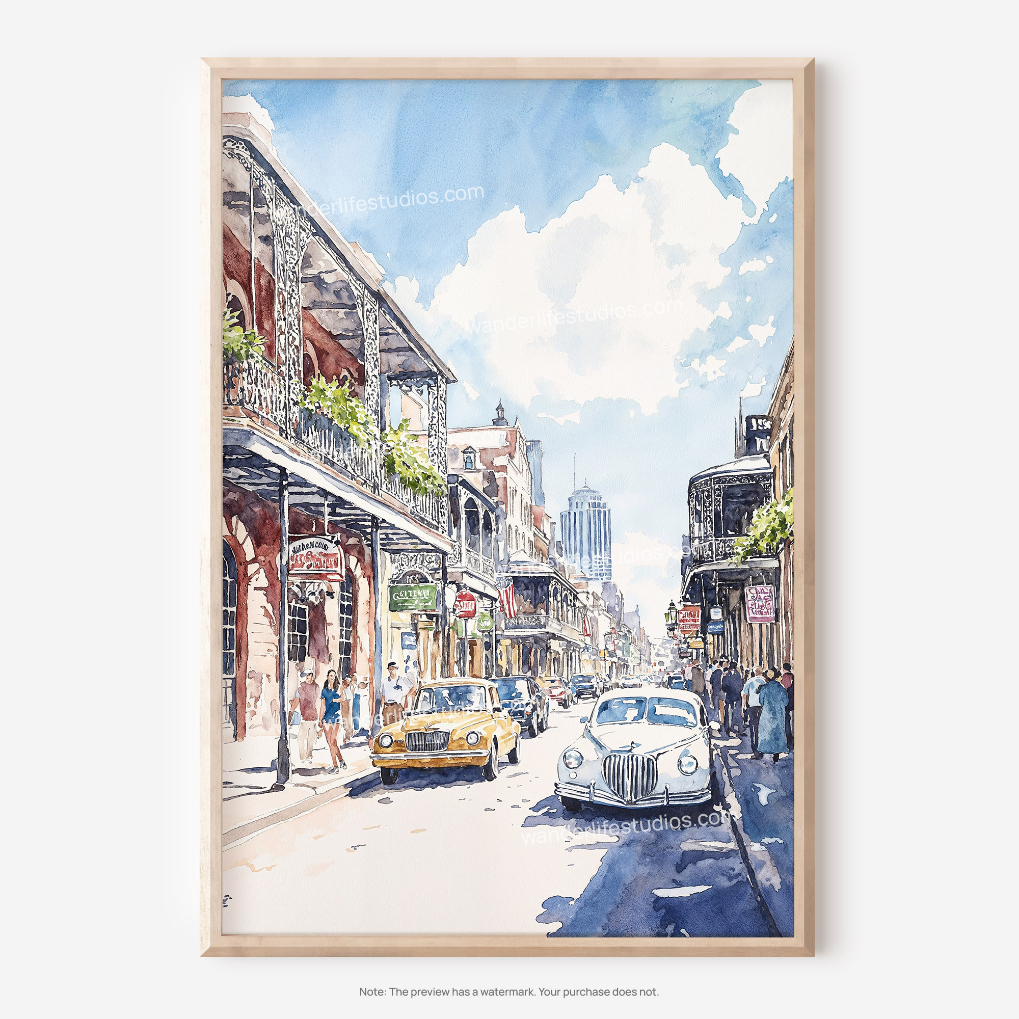 Bourbon Street New Orleans Watercolor Art – Digital Download Wall Decor