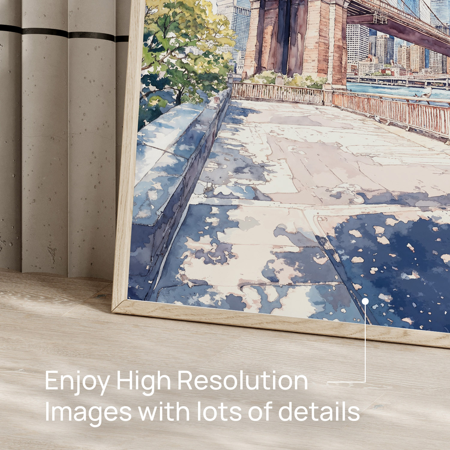 Transform your space with this Brooklyn Bridge watercolor digital download wall art. Its vibrant colors and scenic view provide an effortless way to instantly beautify your home or office.