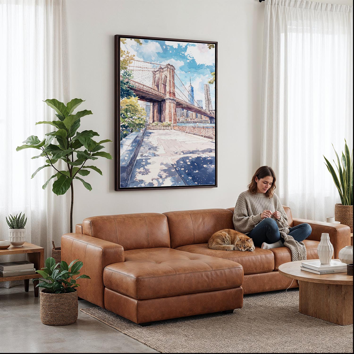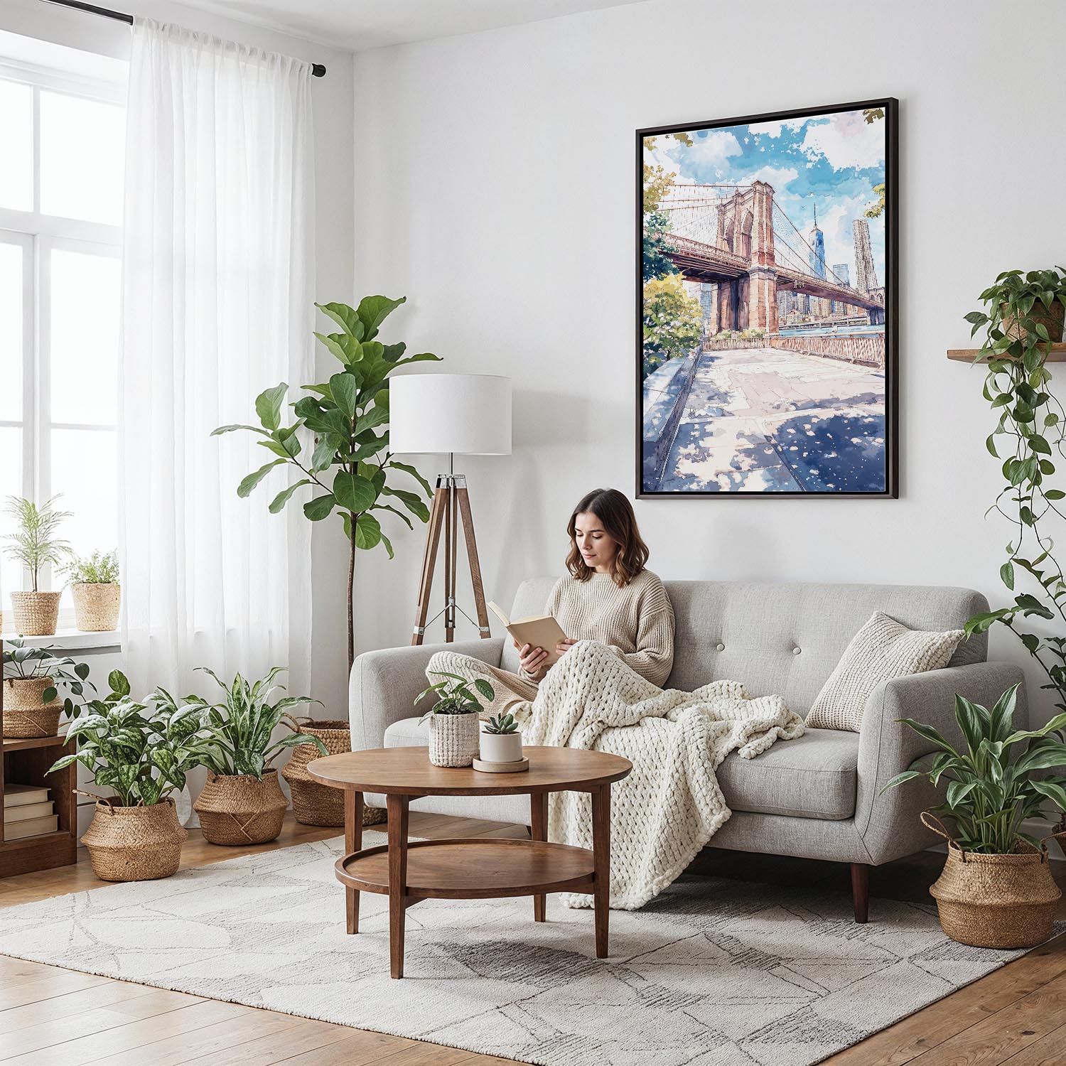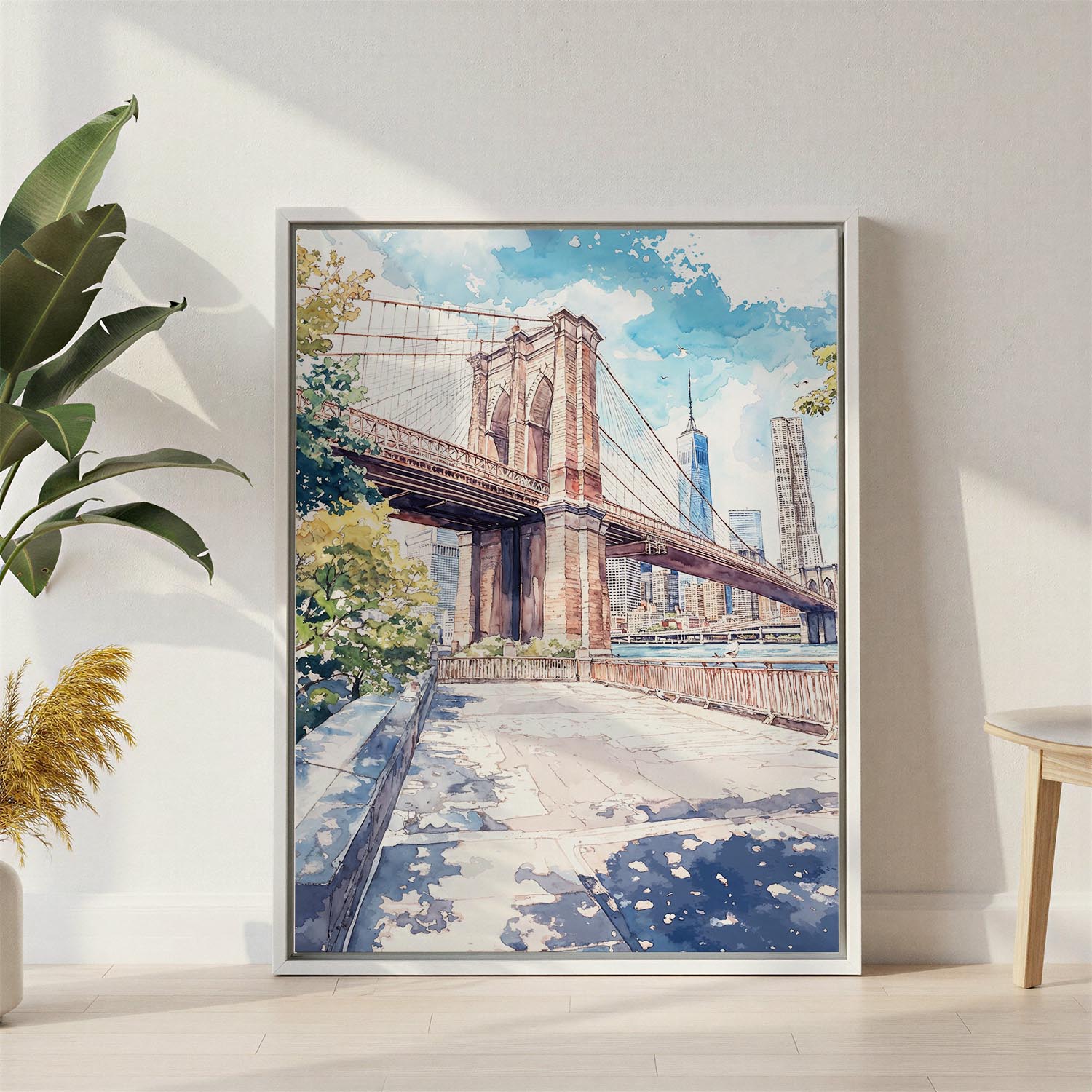 Brooklyn Bridge Watercolor Canvas Print – City Skyline Wall Art