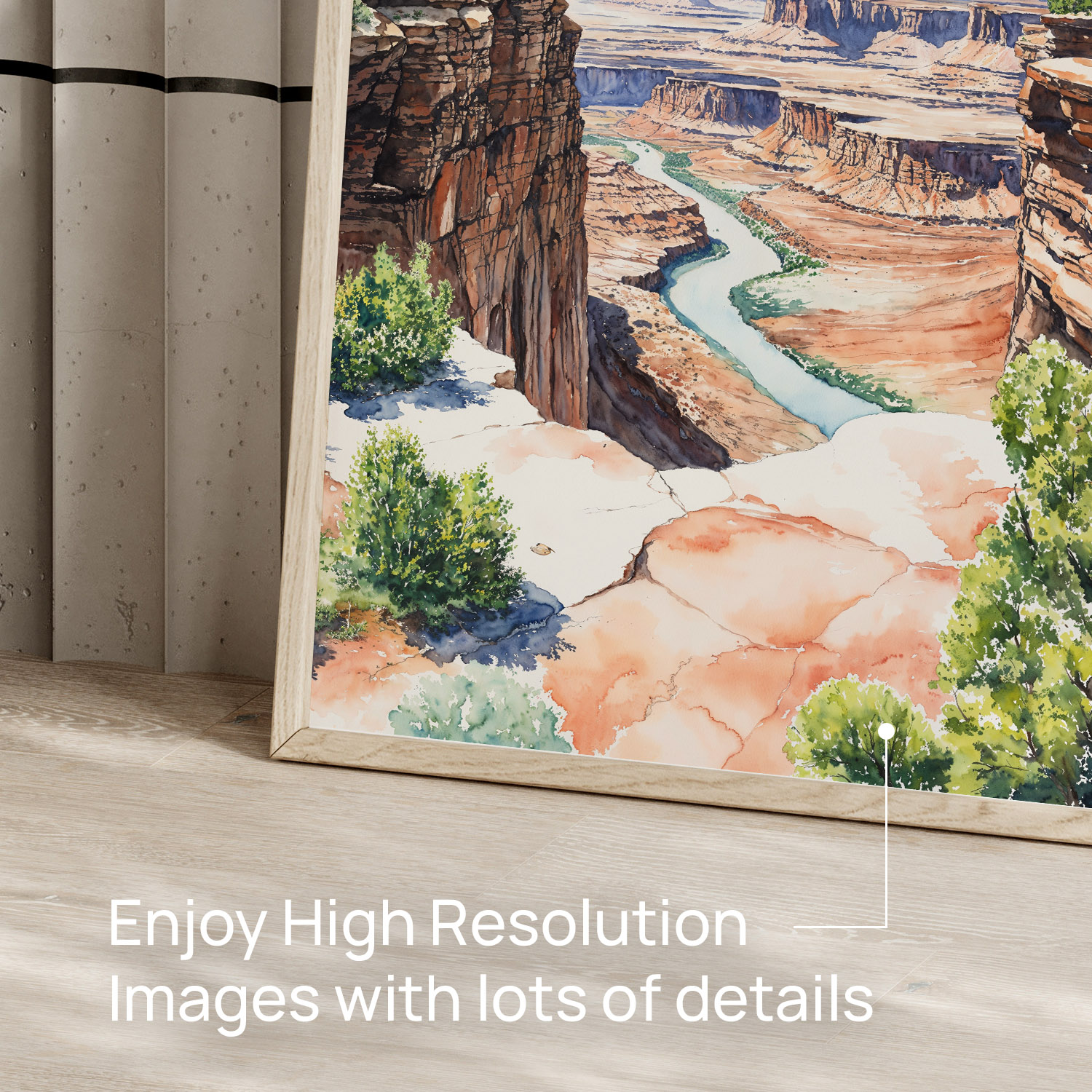 This artwork showcases the breathtaking cliffs and winding river of Canyonlands, bringing a touch of the outdoors into your home. The bright colors and natural elements evoke a sense of adventure and tranquility, making it an ideal addition to any room. Provided as a high-resolution digital file, you can effortlessly print it from home or through a print service. Perfect for living rooms, bedrooms, or office spaces, this piece invites you to enjoy the beauty of nature from the comfort of your home.
