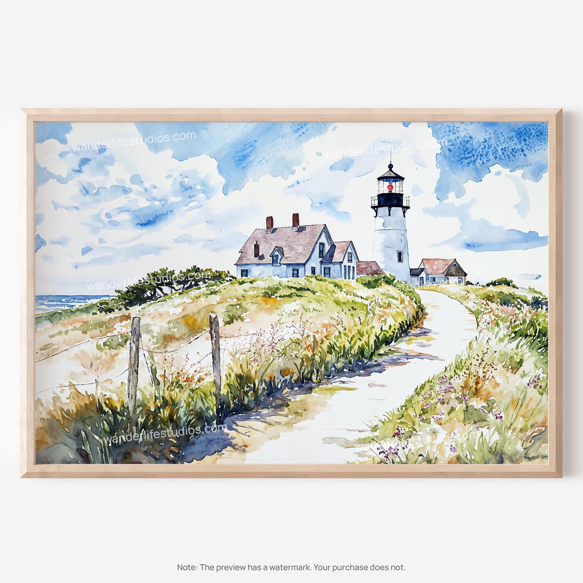 Cape Cod Nobska Lighthouse Watercolor Art – Digital Download for Nautical Decor