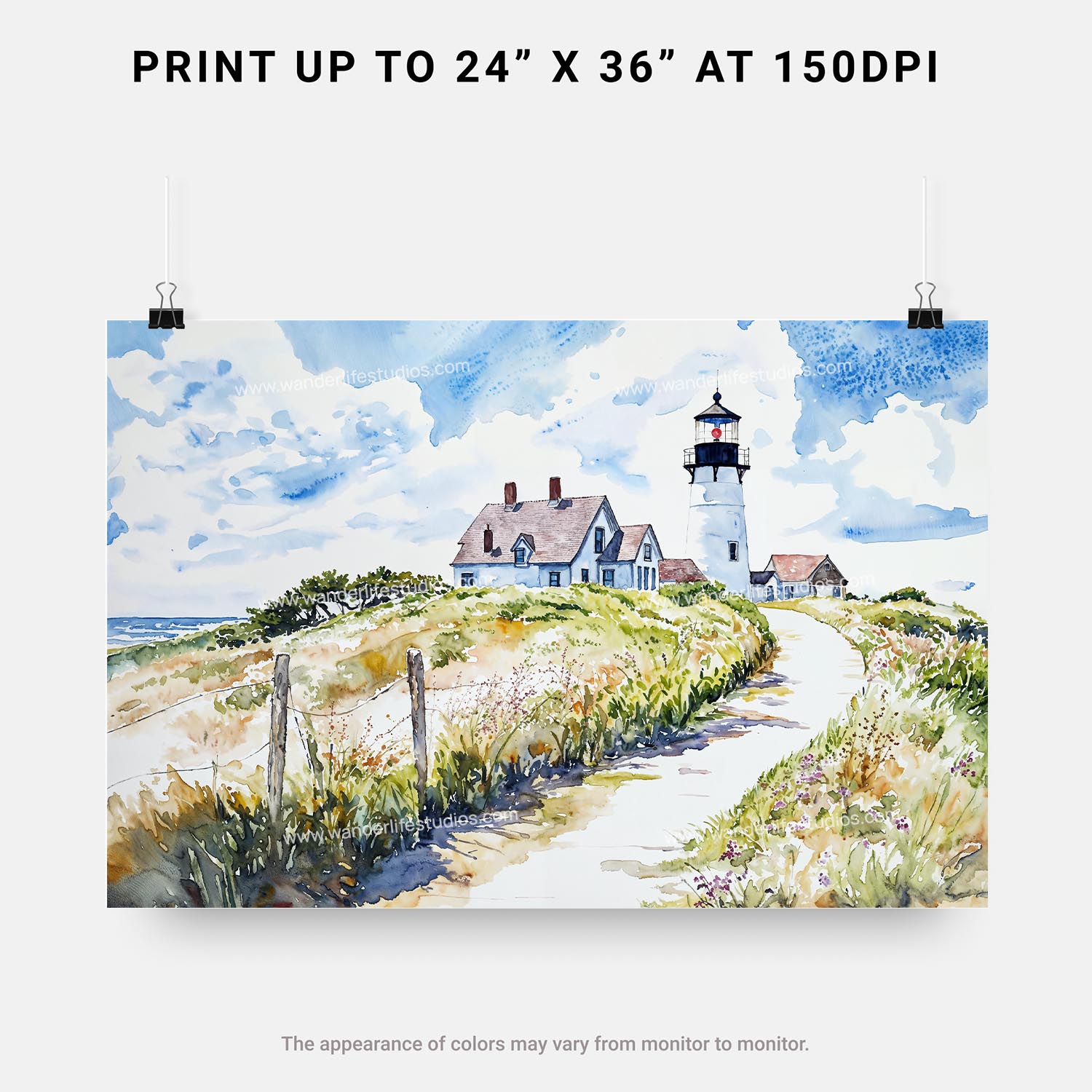Cape Cod Nobska Lighthouse Watercolor Digital Download
