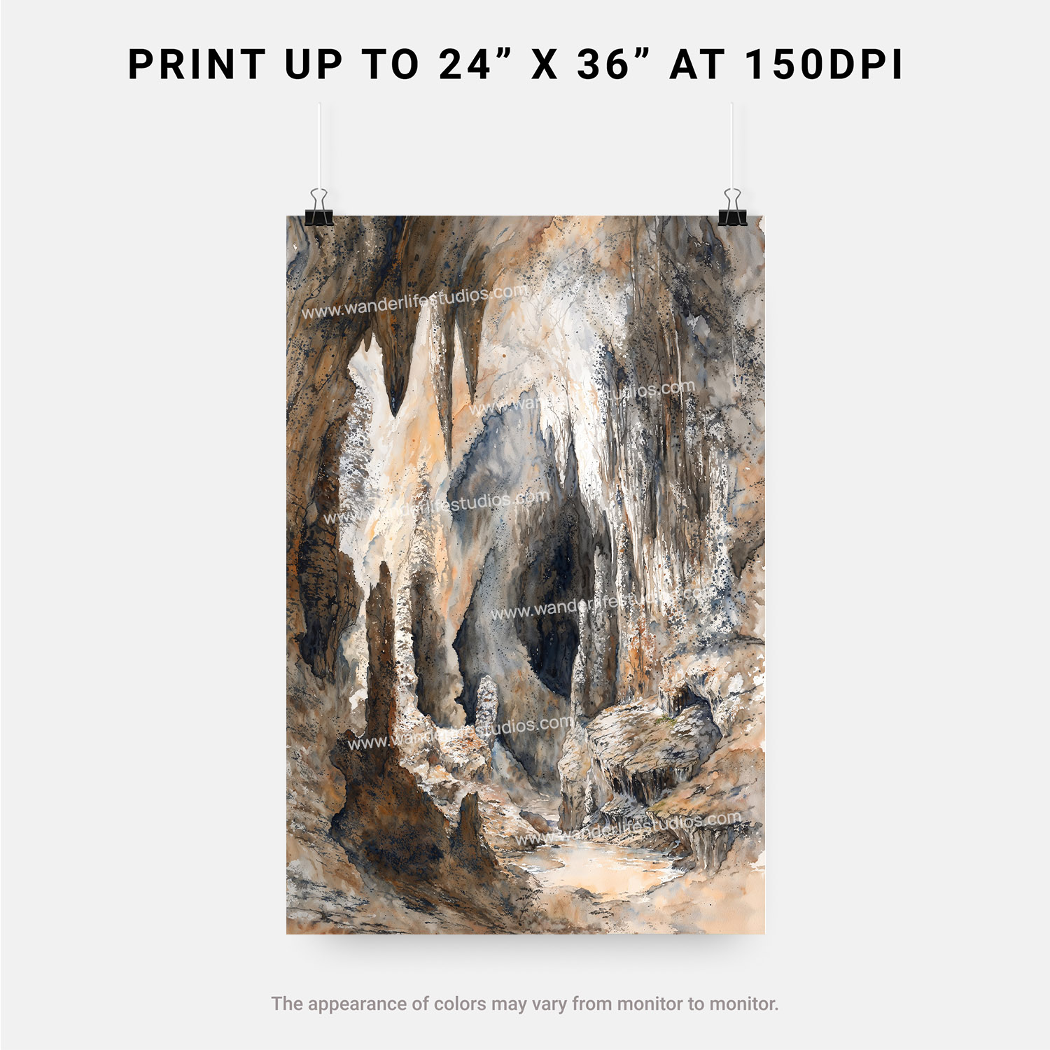 Carlsbad Caverns Watercolor Art – Digital Download of Stunning Cave Landscape