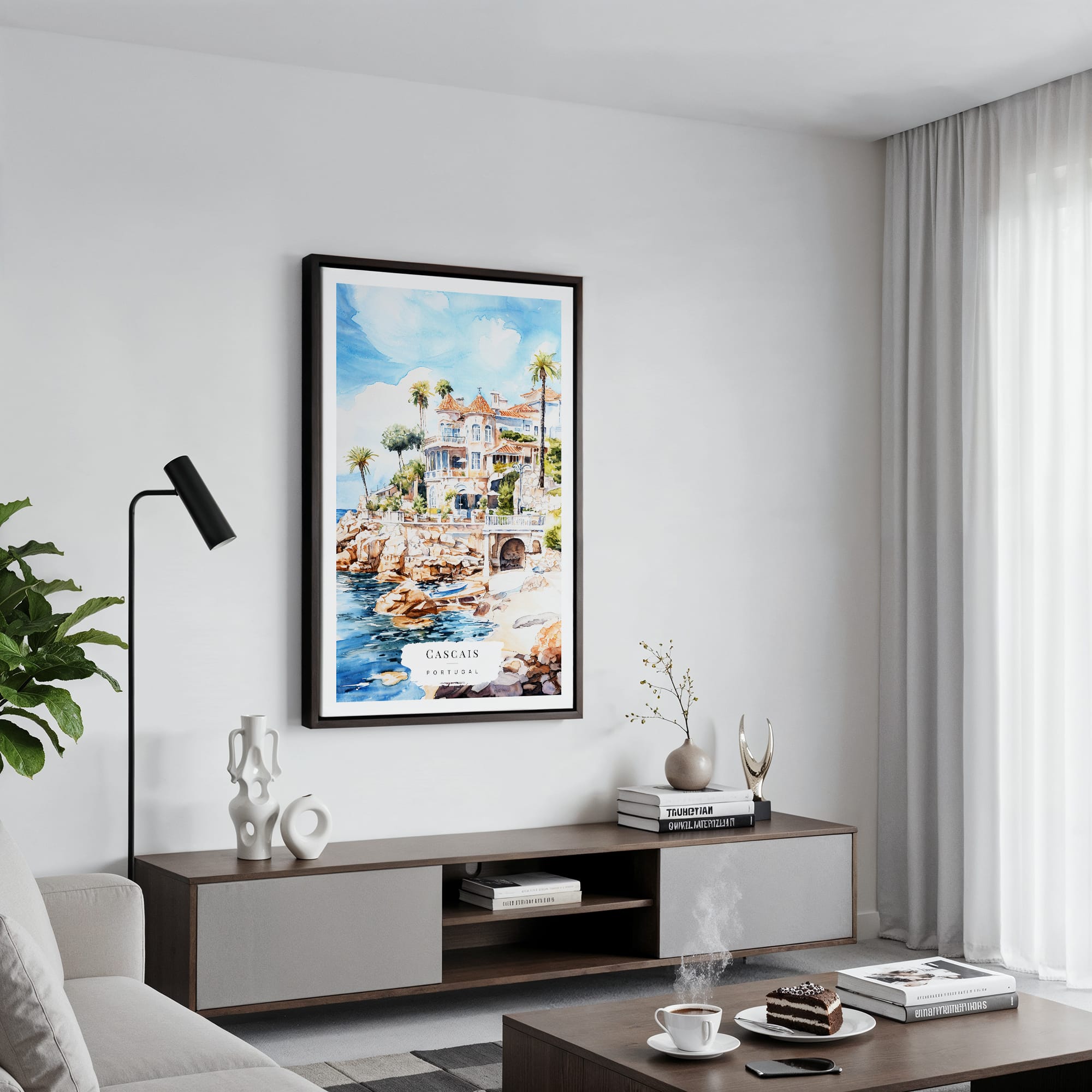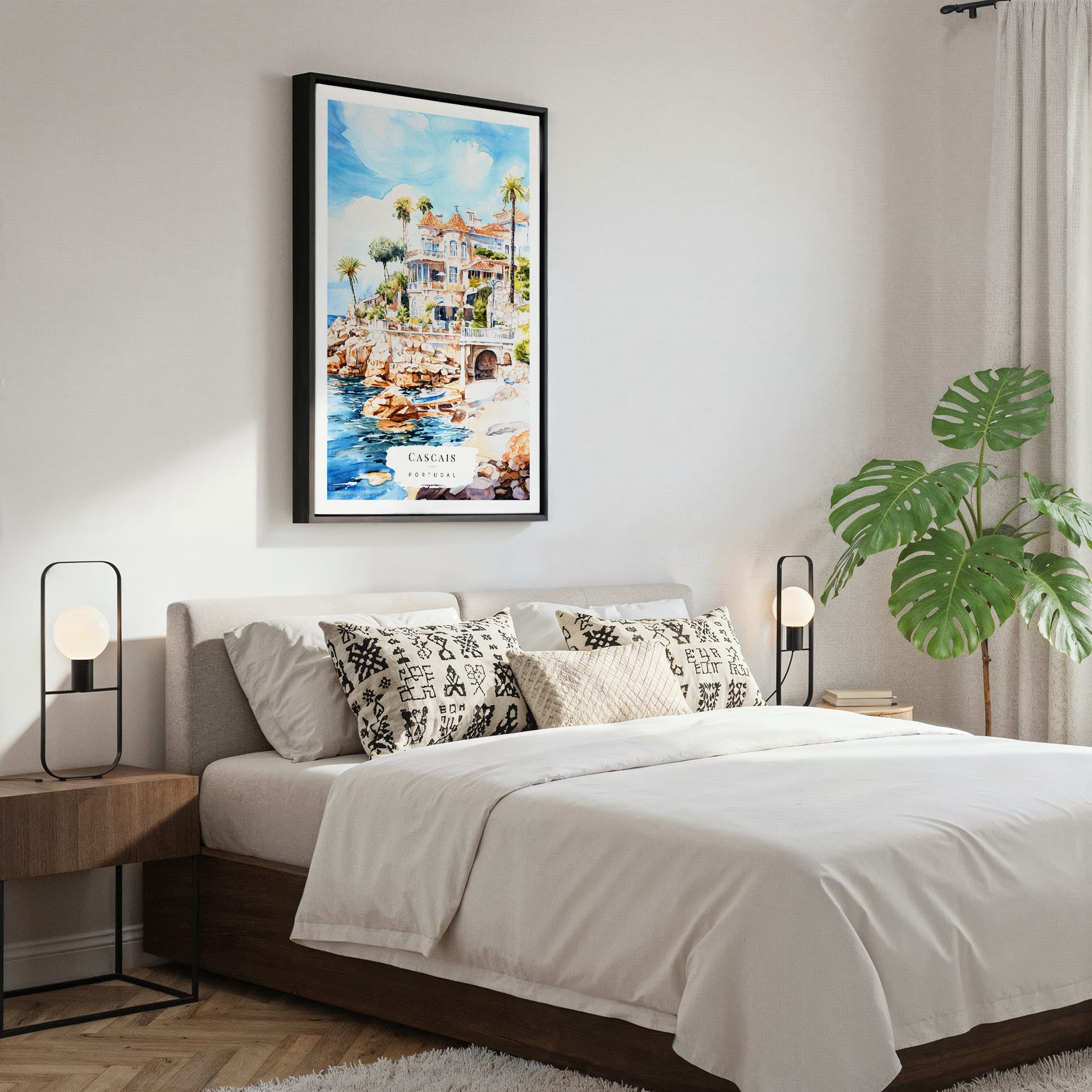 Cascais Portugal Watercolor Canvas Print – Coastal Landscape Wall Art