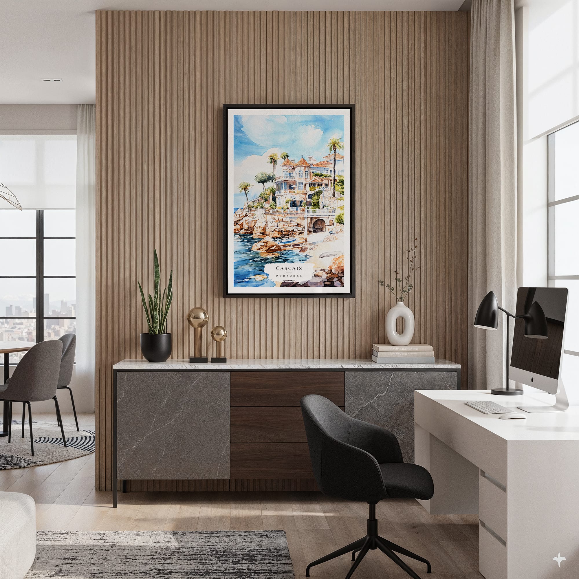 This artwork captures the beauty of Cascais, Portugal, showcasing vibrant blues of the sea and the warmth of the coastline. It creates a relaxed atmosphere, ideal for walls in a living room or office. Printed on quality canvas with fade-resistant inks, it comes ready to hang and adds a touch of coastal elegance to your home. Consider it for personal enjoyment or as a thoughtful gift for someone who appreciates travel or seaside scenery.