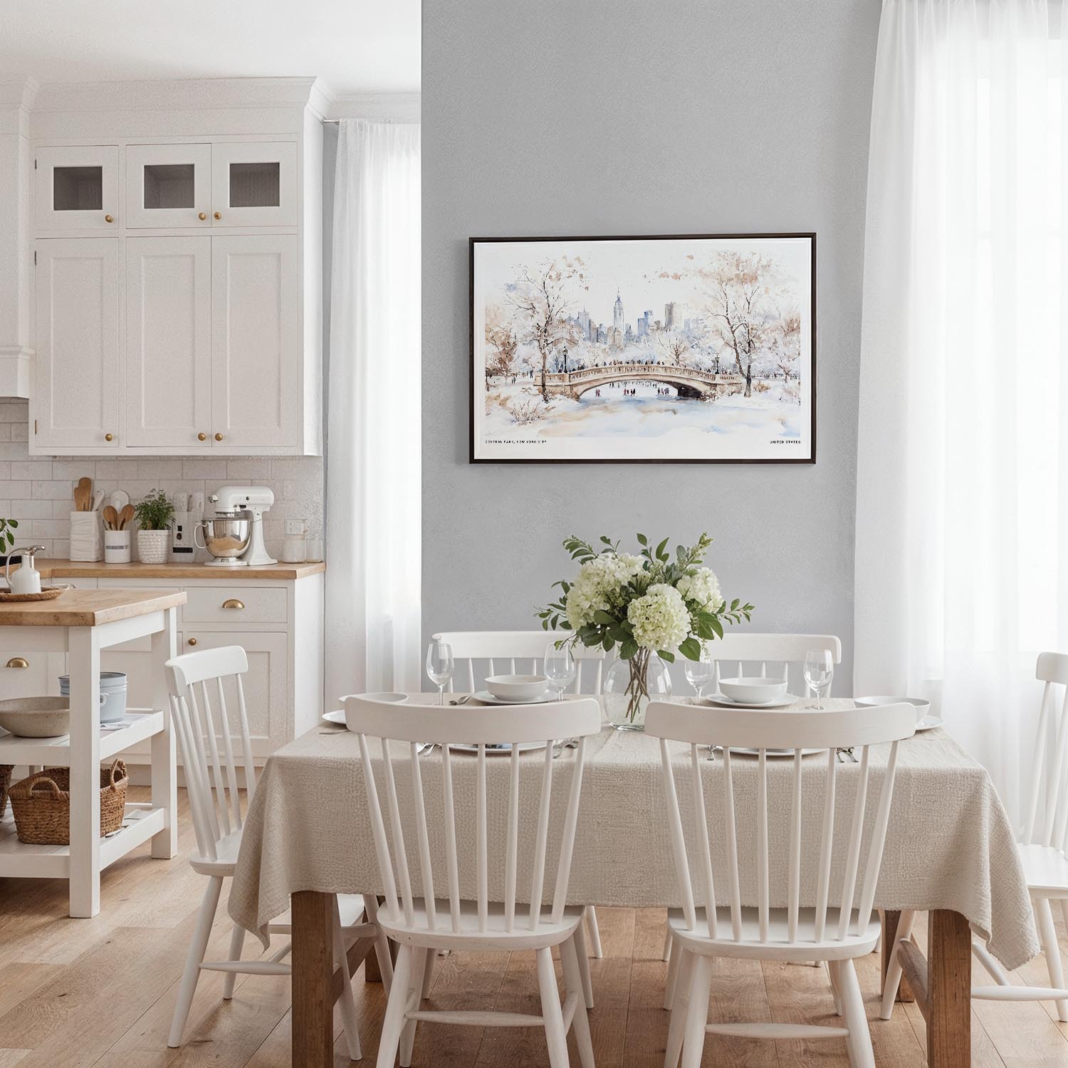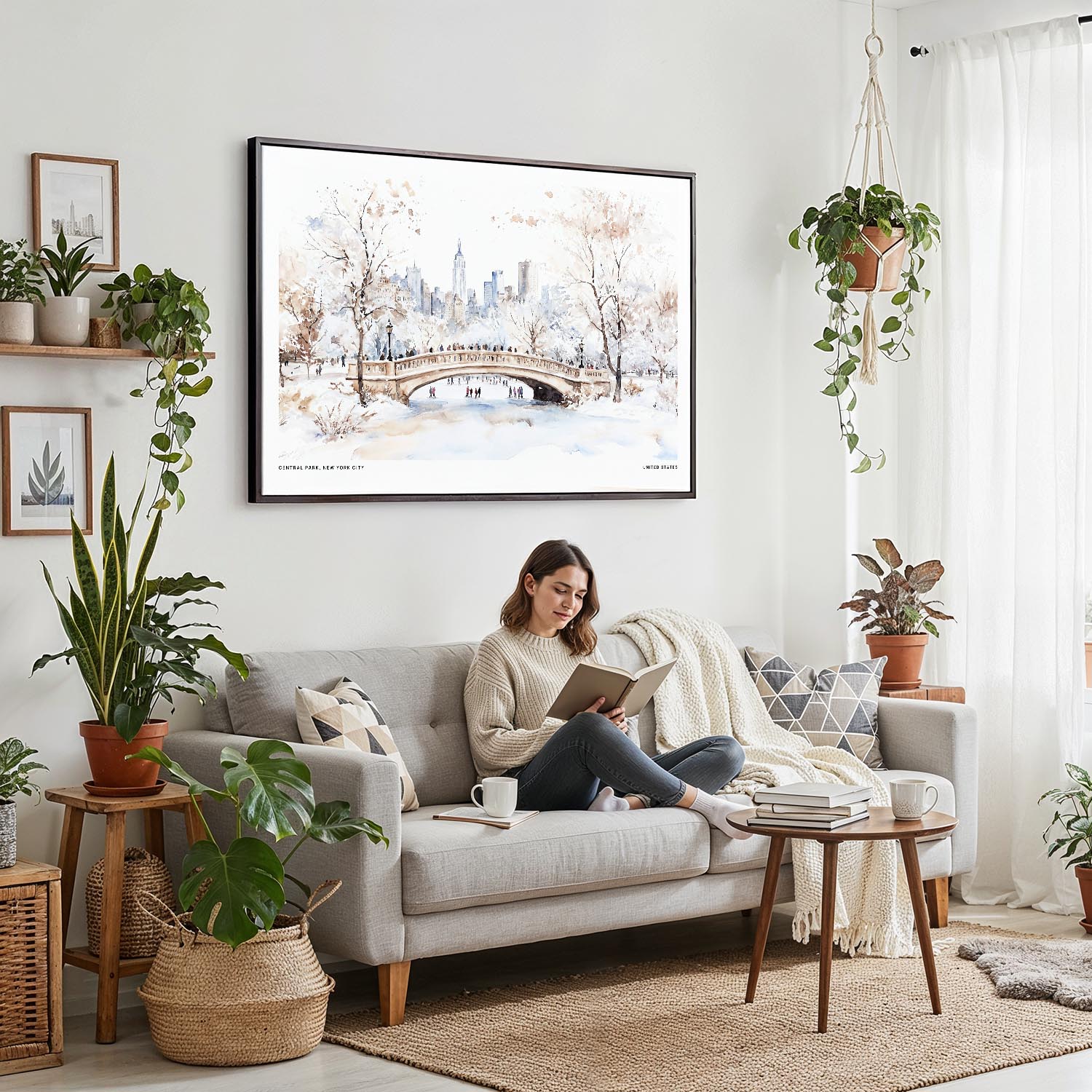 Experience the charm of Central Park in winter with this beautifully crafted canvas print. The artwork captures a quiet scene, highlighting the snowy paths and graceful bridges against the backdrop of Manhattan’s skyline.