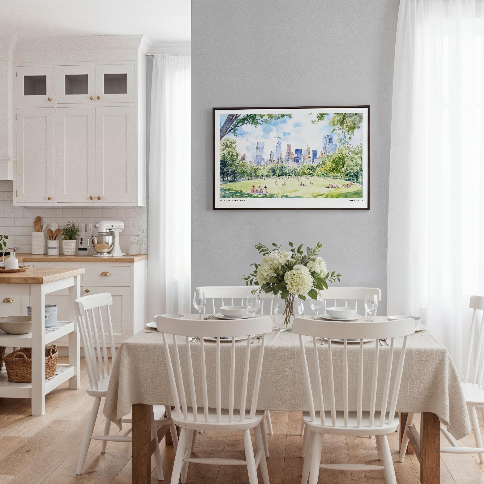 This canvas print showcases the lively atmosphere of Central Park, capturing the greenery and skyline of New York City. It’s ready to hang and perfect for any home or office space.
