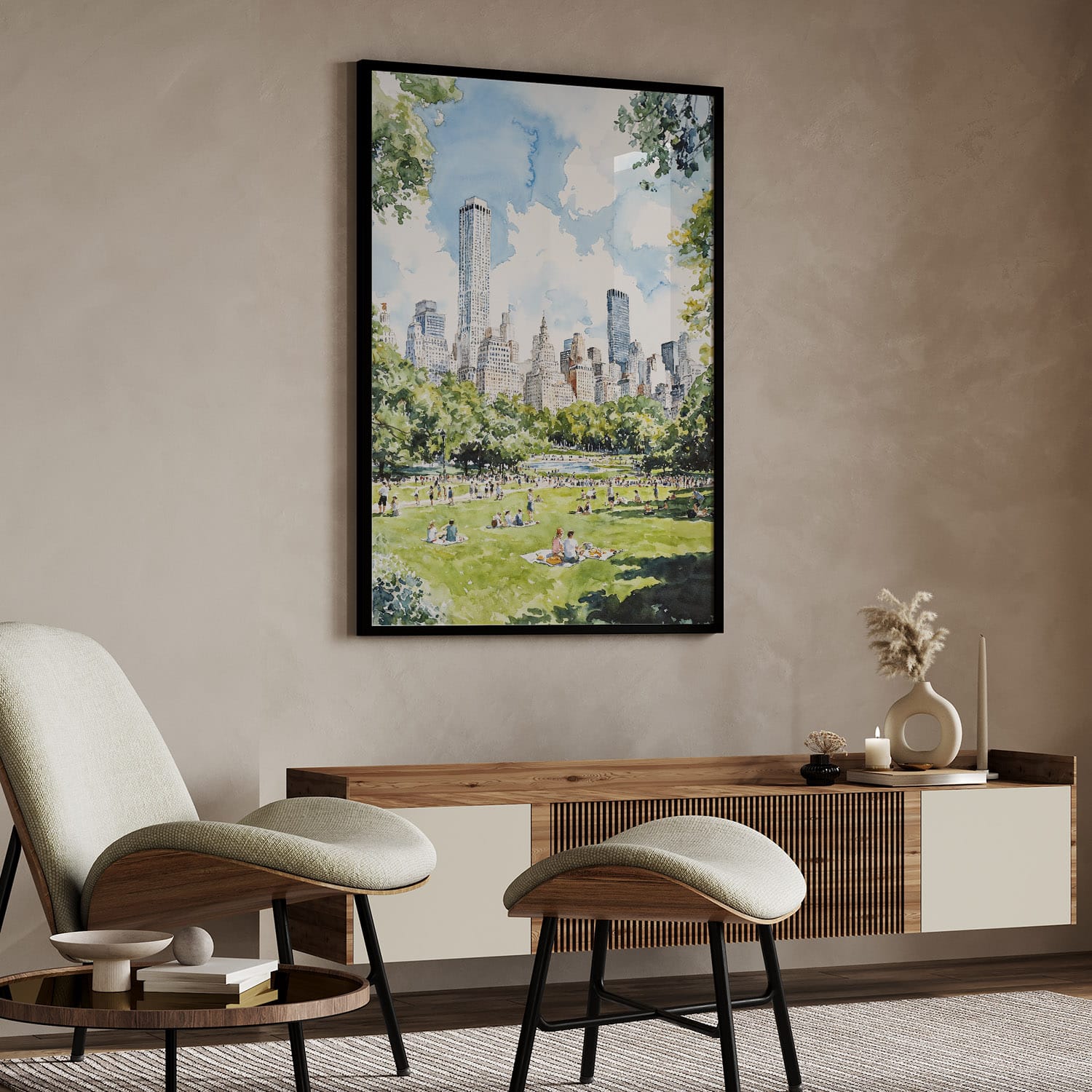 Central Park Watercolor Wall Art – Digital Download of New York City Landscape