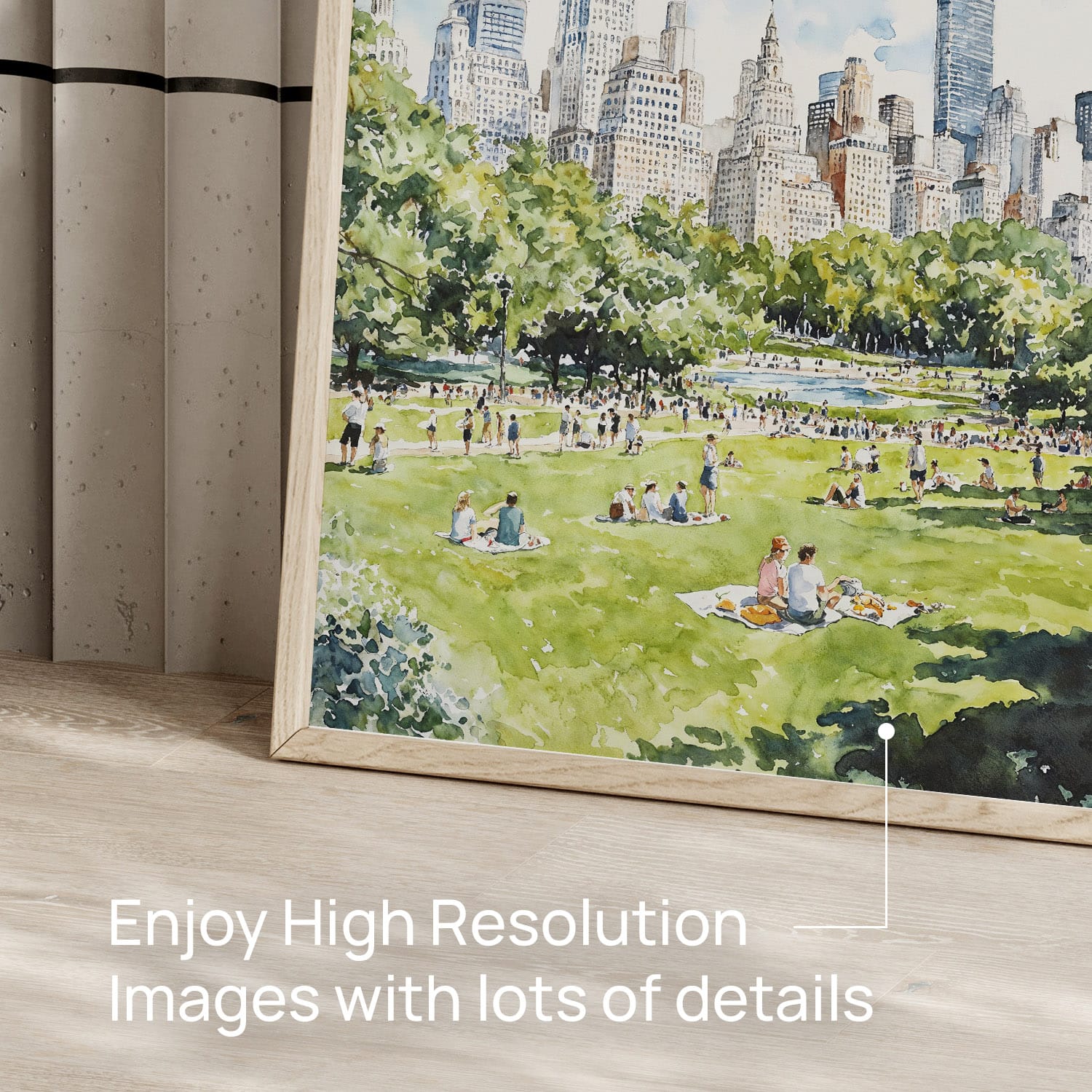 Capture the essence of New York City with this Central Park digital download wall art. The watercolor style brings a vibrant and inviting scene to your home, allowing for instant printing and enjoyable display in any space.