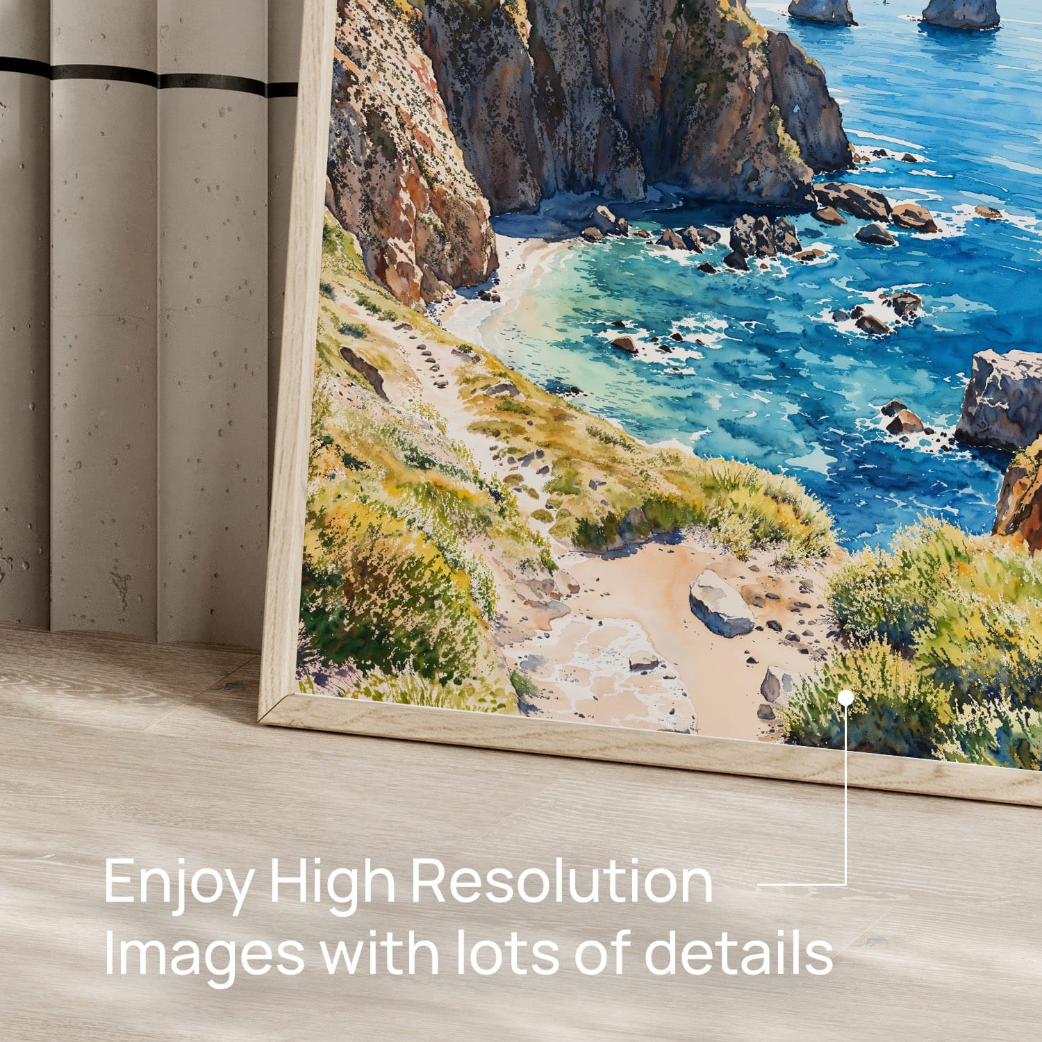 This artwork captures the breathtaking beauty of Channel Islands National Park, showcasing cliffs and deep blue waters that inspire a sense of adventure. Instantly transform your space with this high-resolution digital file, which you can print at home or via your local print shop. Perfect for living rooms, home offices, or anywhere in need of a fresh coastal vibe. Enjoy the convenience of immediate access to this inviting scene and make your walls sing.