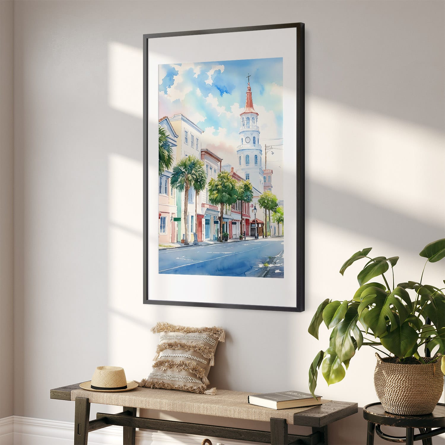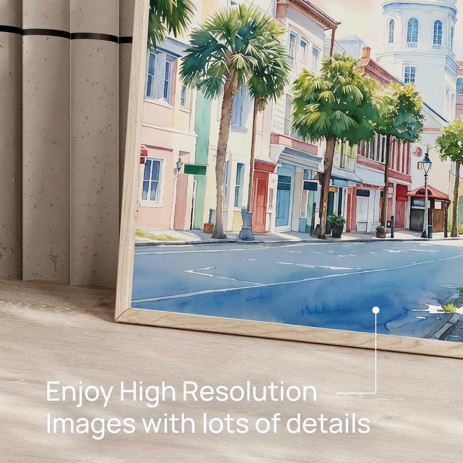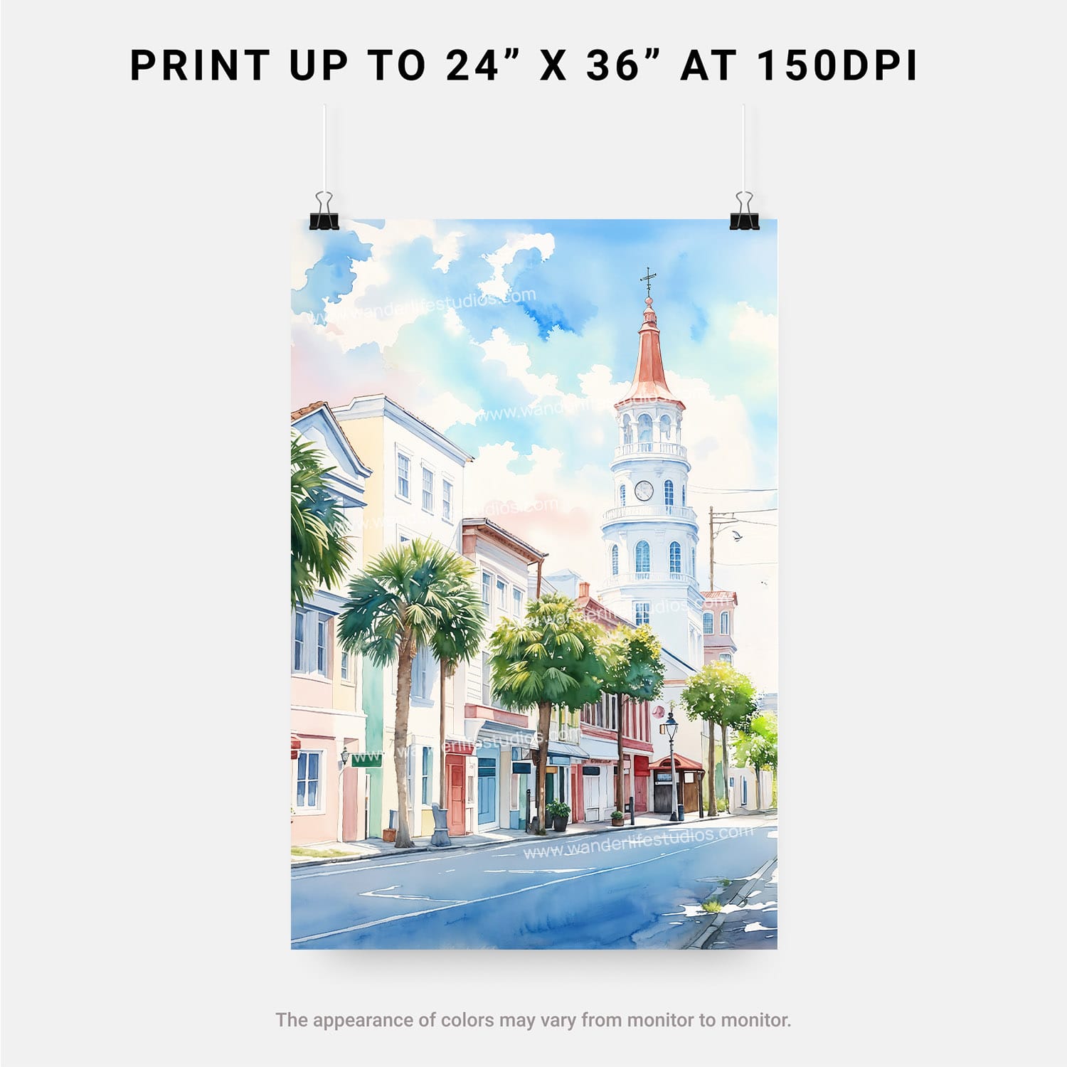 Charleston SC Watercolor Cityscape Digital Download Wall Art