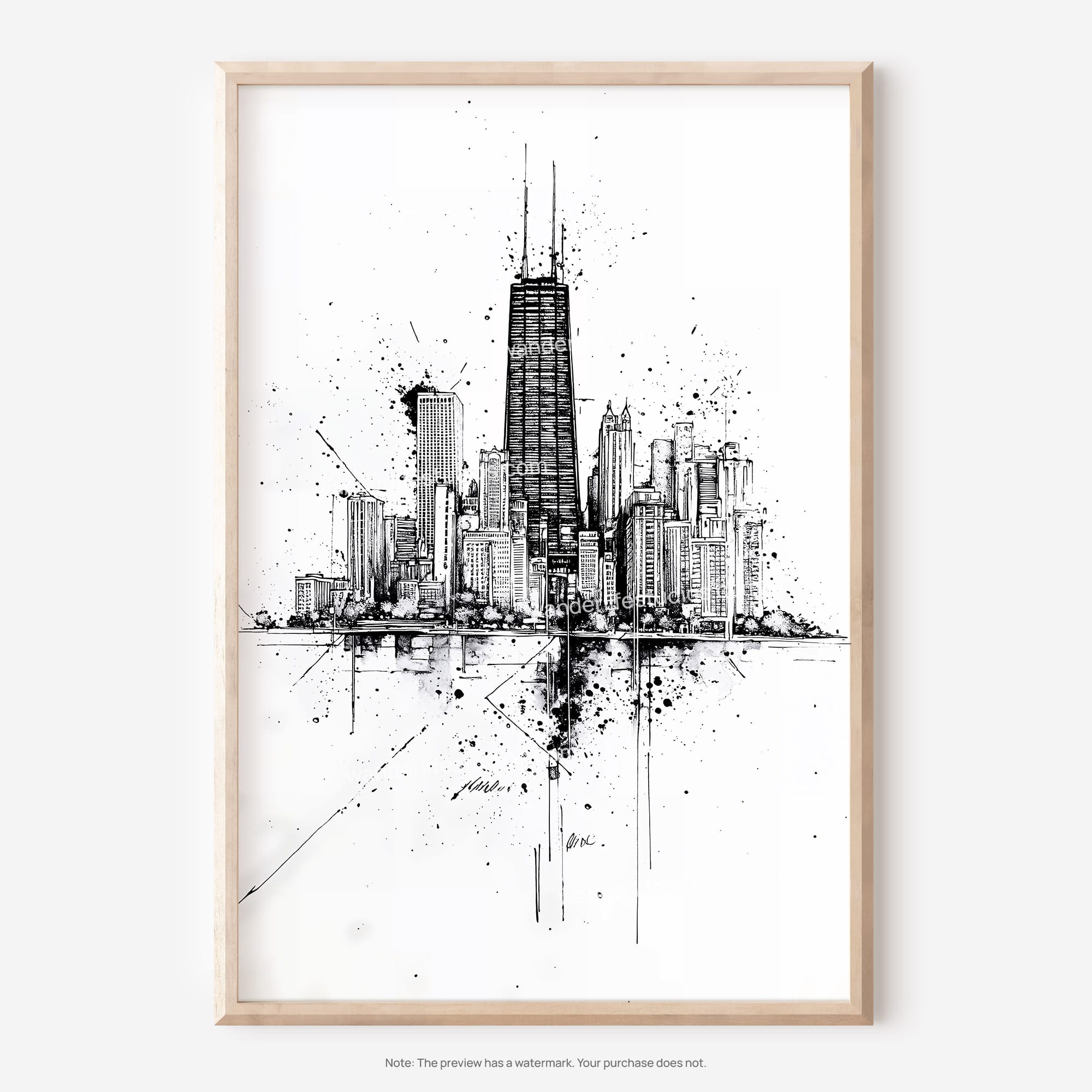 Bring the iconic Chicago skyline into your home with this striking digital download wall art. Featuring detailed pencil drawing elements, it’s easy to print and display in your space instantly.