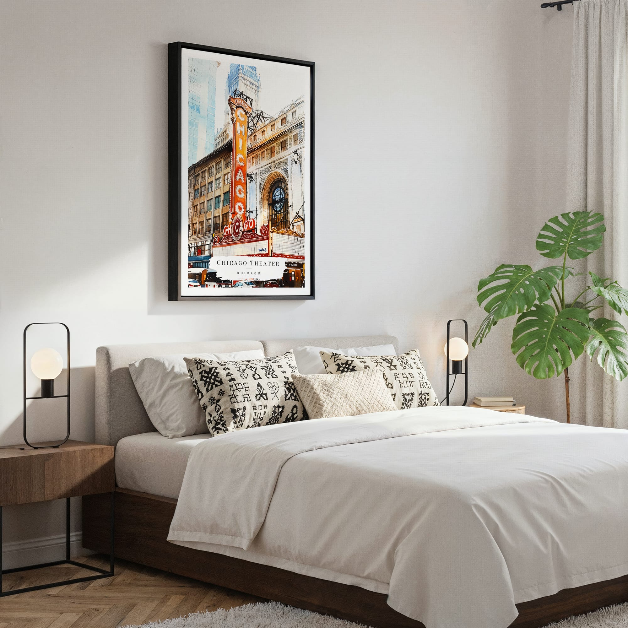 Chicago Theater Watercolor Canvas Print – Vibrant Cityscape Art for Urban Spaces