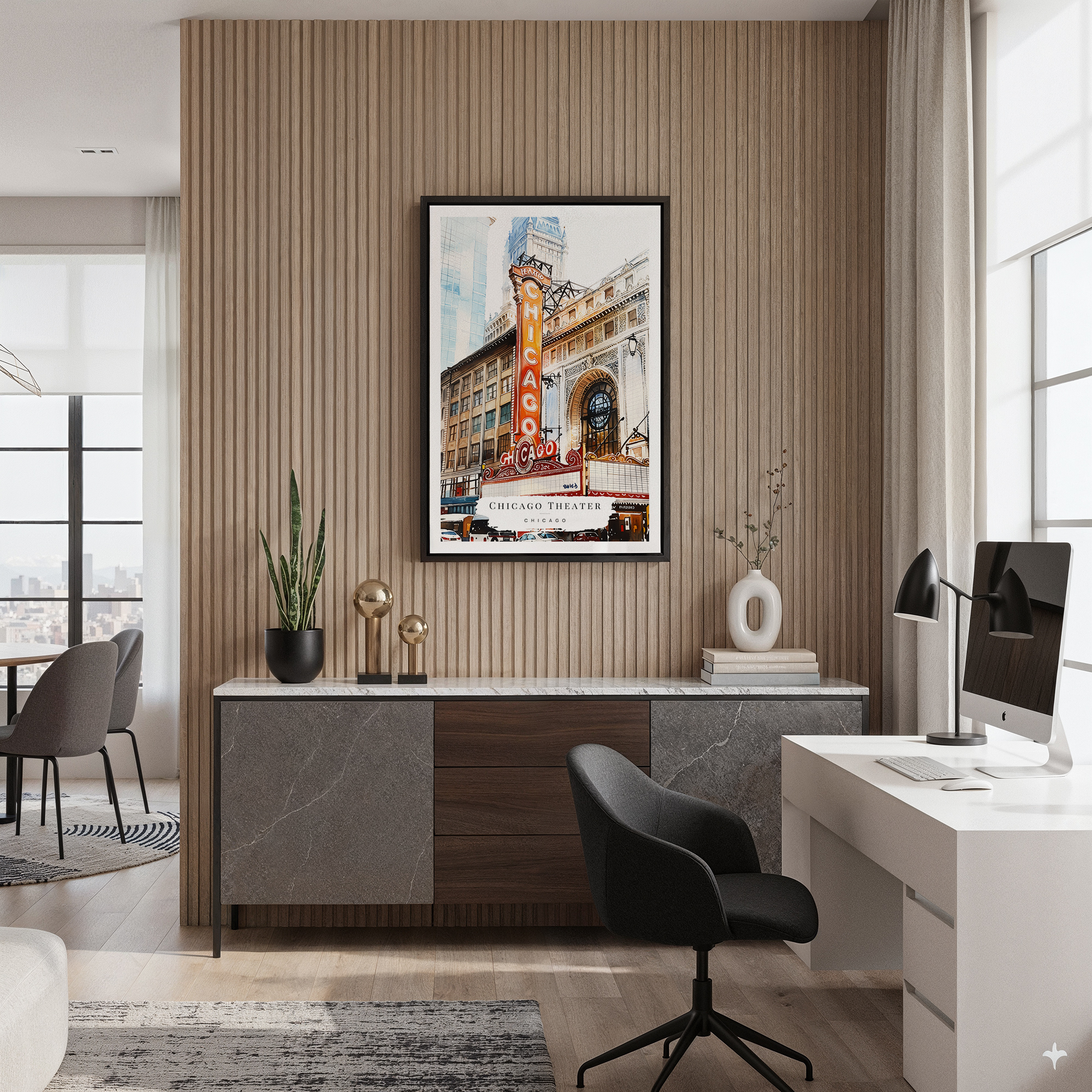 This Chicago Theater canvas art print brings a splash of urban life to your space with its lively colors and detailed architecture. It’s an effortless addition to your living room, home office, or a unique gift for city lovers.