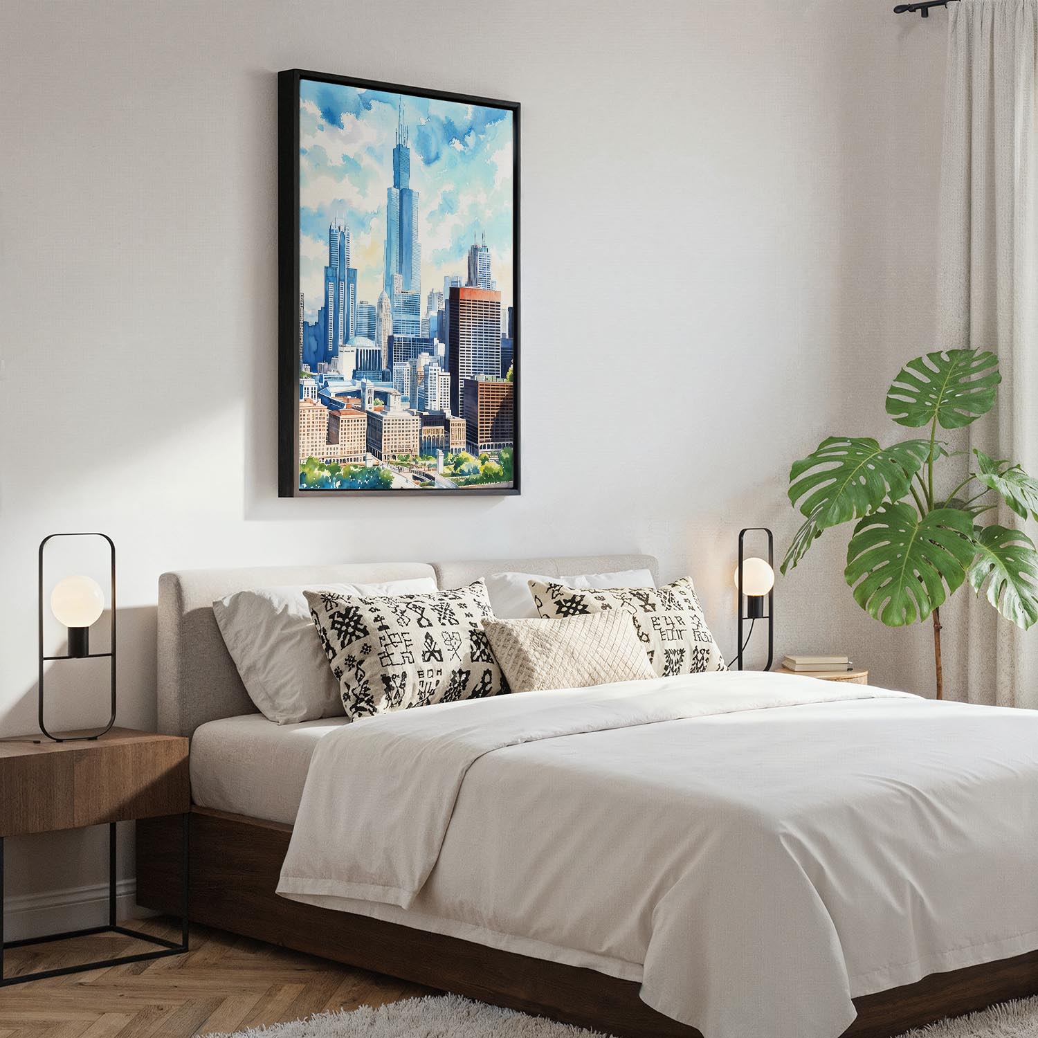 Chicago Willis Tower Watercolor Canvas Print – Urban Skyline Art