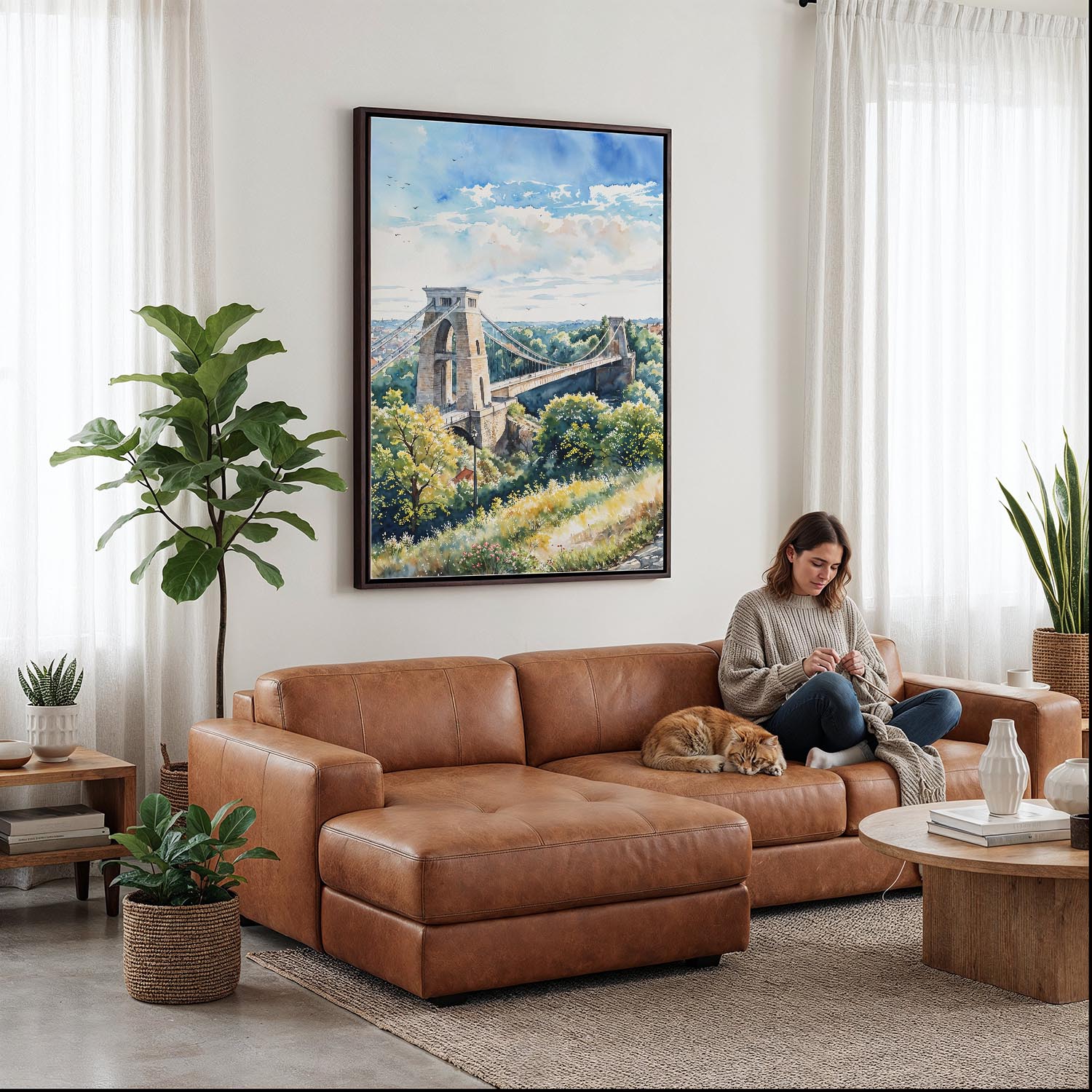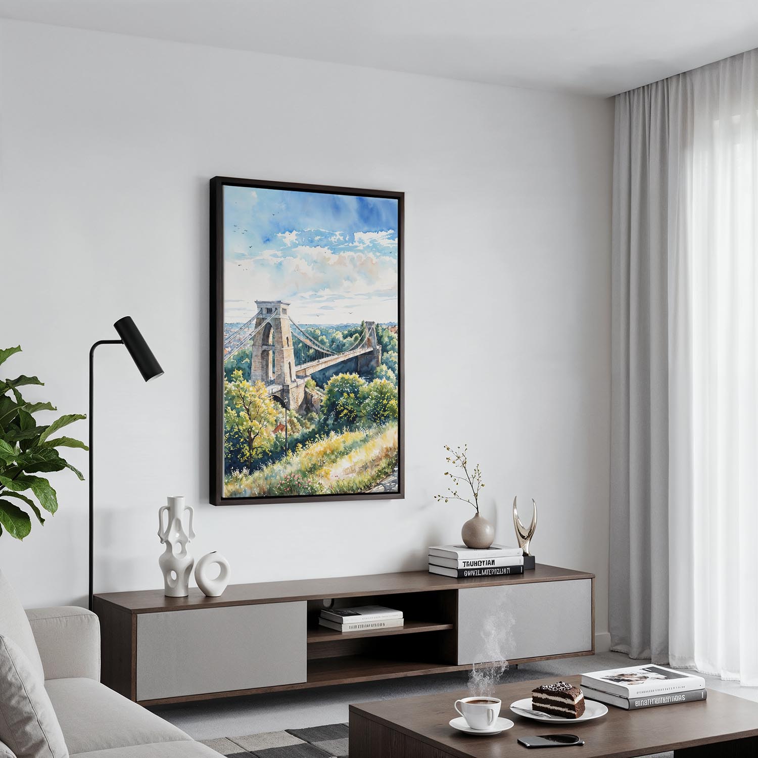Clifton Bridge Bristol Watercolor Canvas Print – Scenic Wall Art