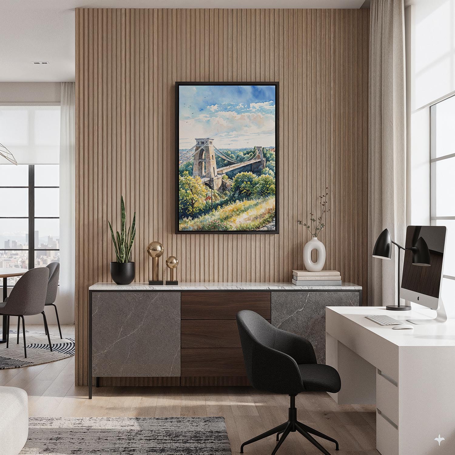 Bring the iconic Clifton Bridge of Bristol into your home with this canvas print. It’s a ready-to-hang piece that fits beautifully in living rooms, offices, or entryways.