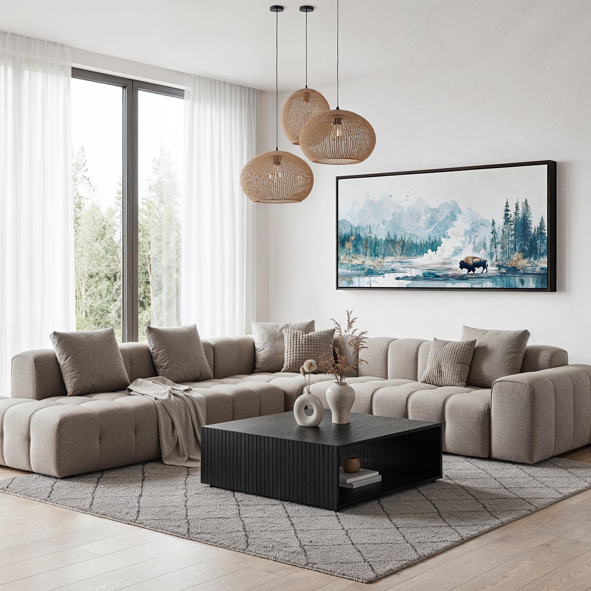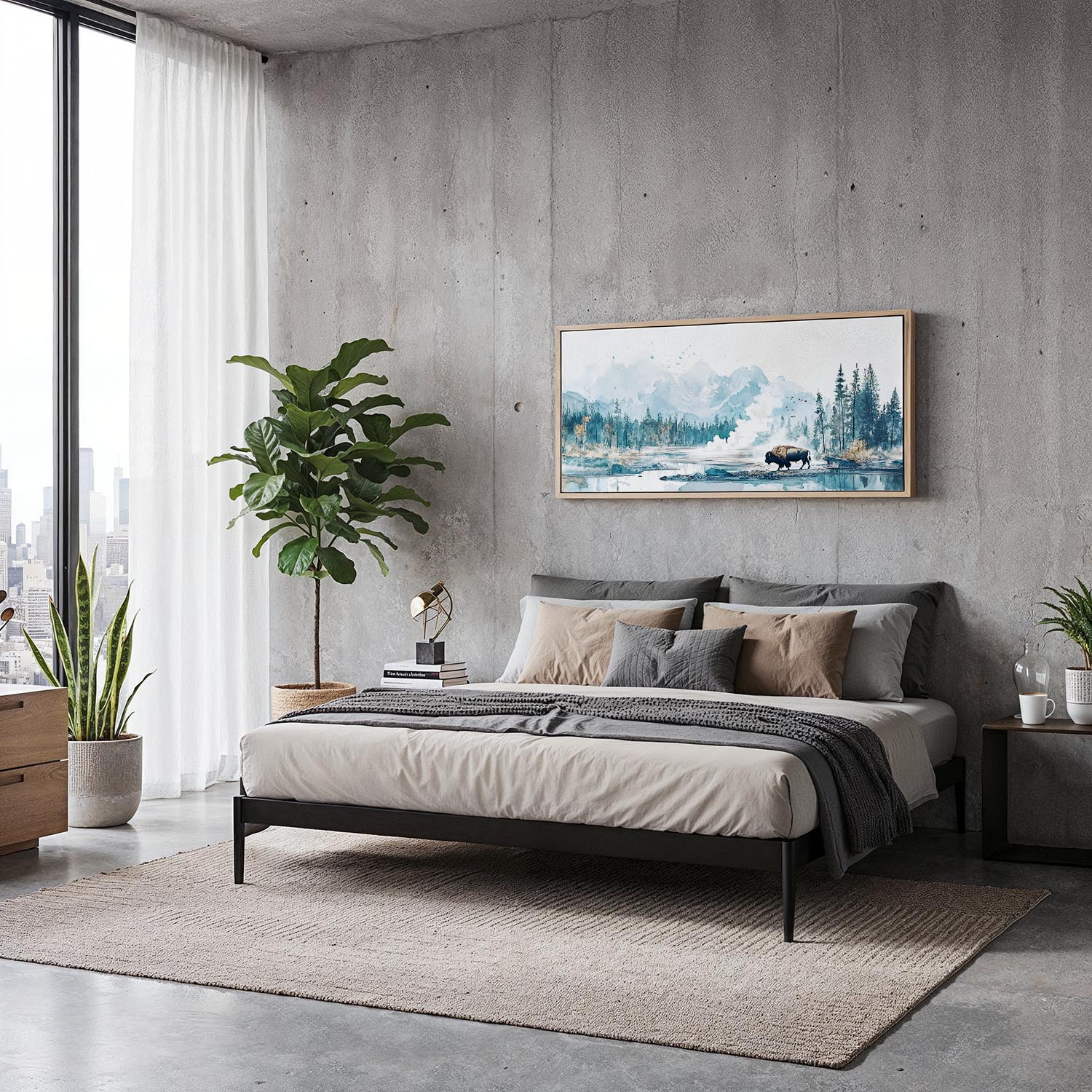 This artwork captures the majestic bison in the tranquil beauty of Yellowstone’s landscape, showcasing soft watercolor tones and towering peaks. Its wide 2:1 aspect ratio enhances the feeling of open space, making any room feel more inviting. Created on hand-stretched canvas with fade-resistant inks and solid wood stretcher bars, it’s ready to hang right out of the box. Ideal for display above sofas, in hallways, or as a striking addition to office environments. A wonderful choice for personal enjoyment or as a thoughtful gift for nature enthusiasts.